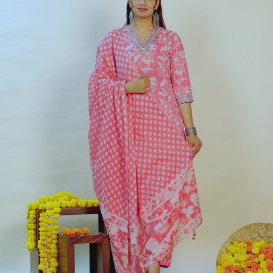 Embroidered Soft Cotton Floral Straight Peach Kurta