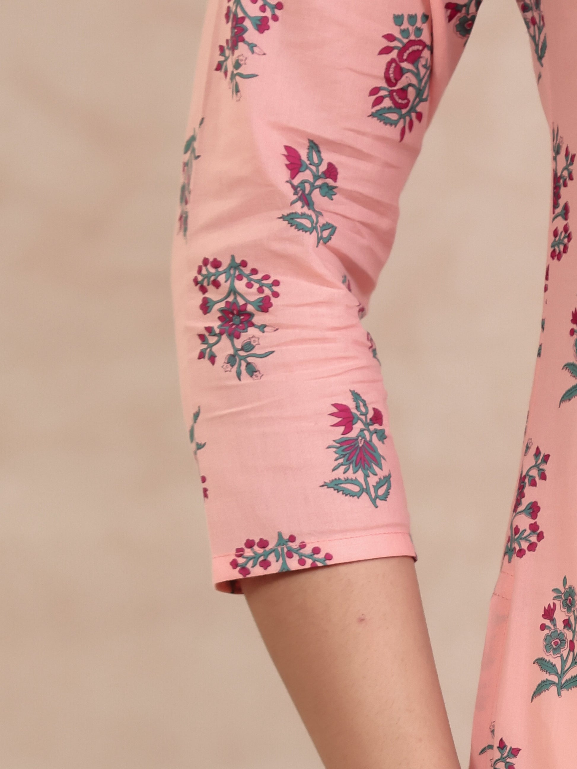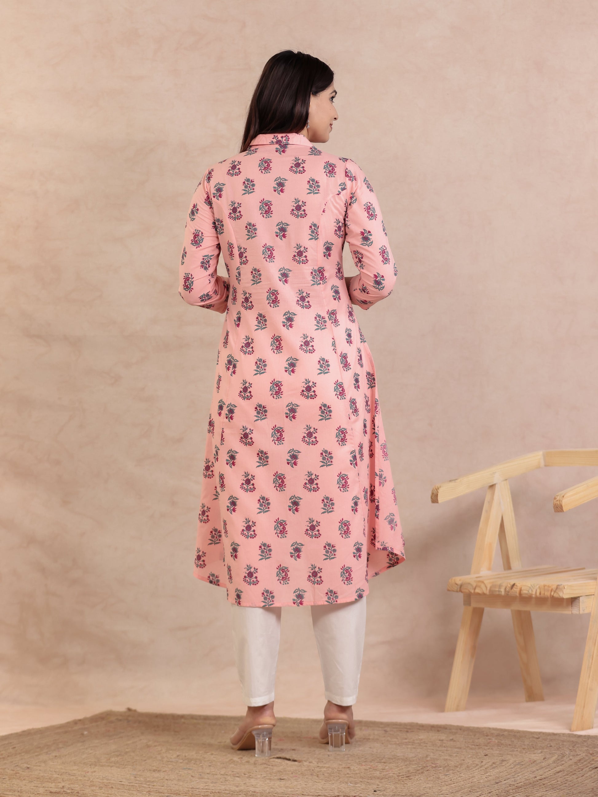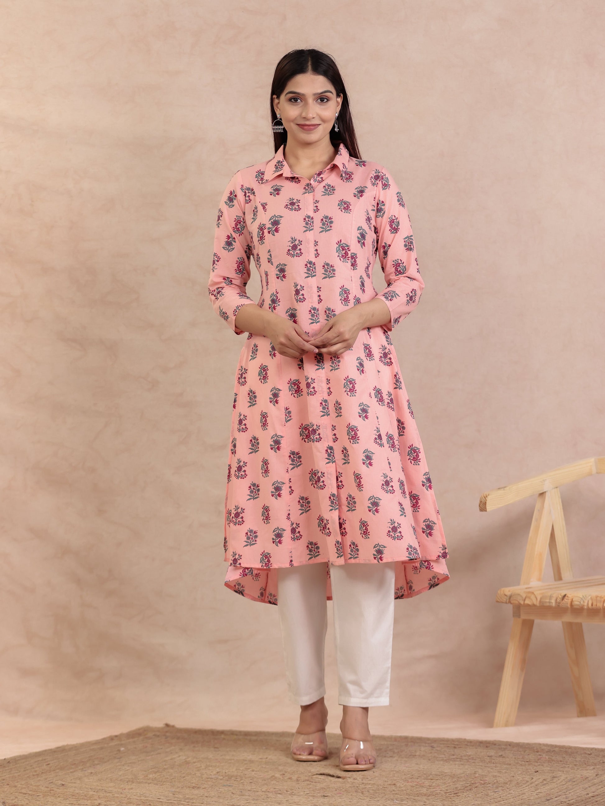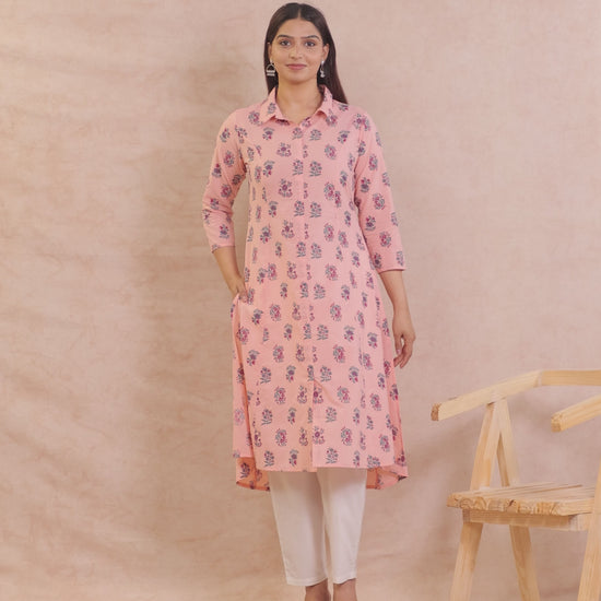Soft Cotton Floral High Low Peach Kurta