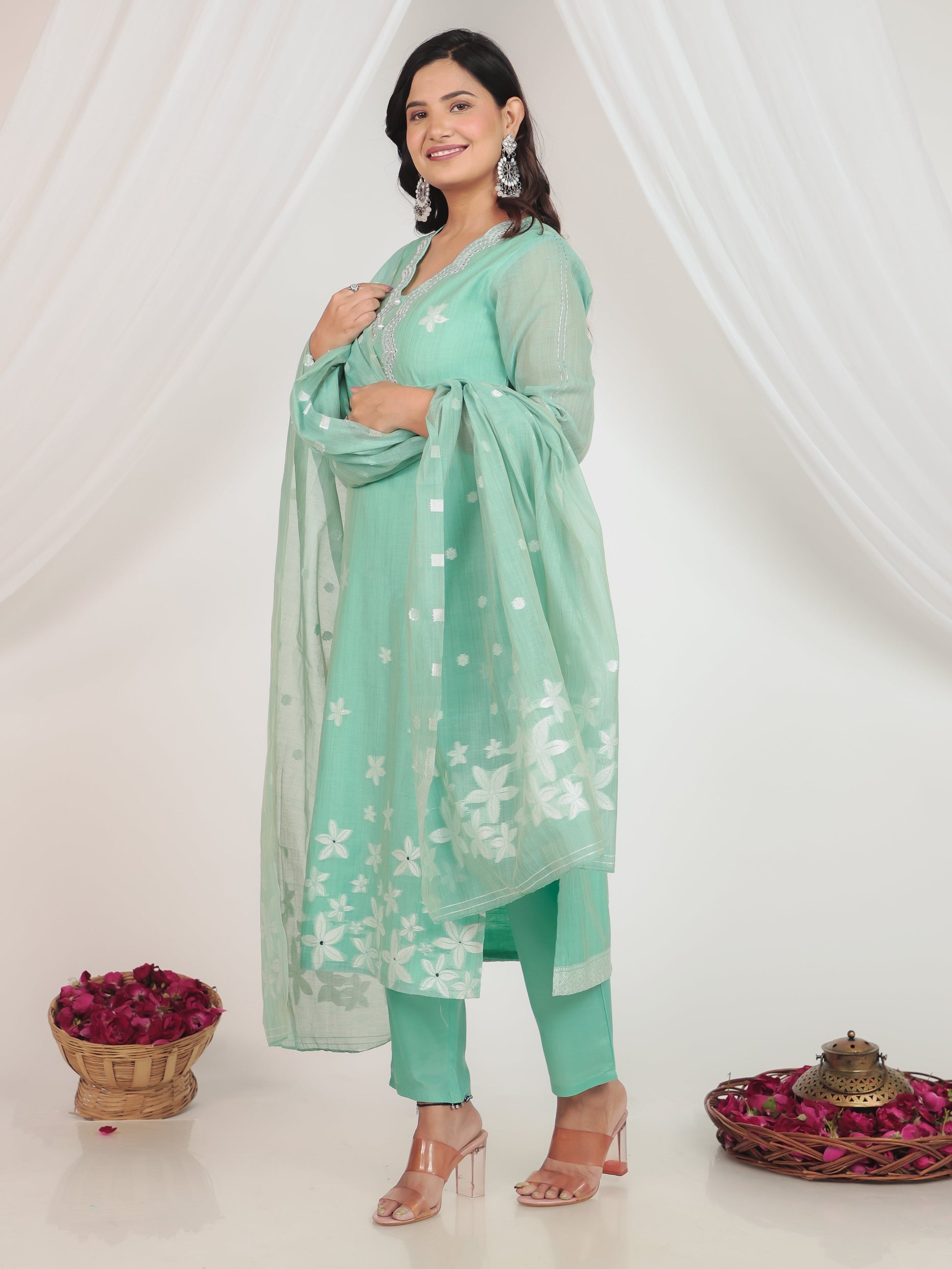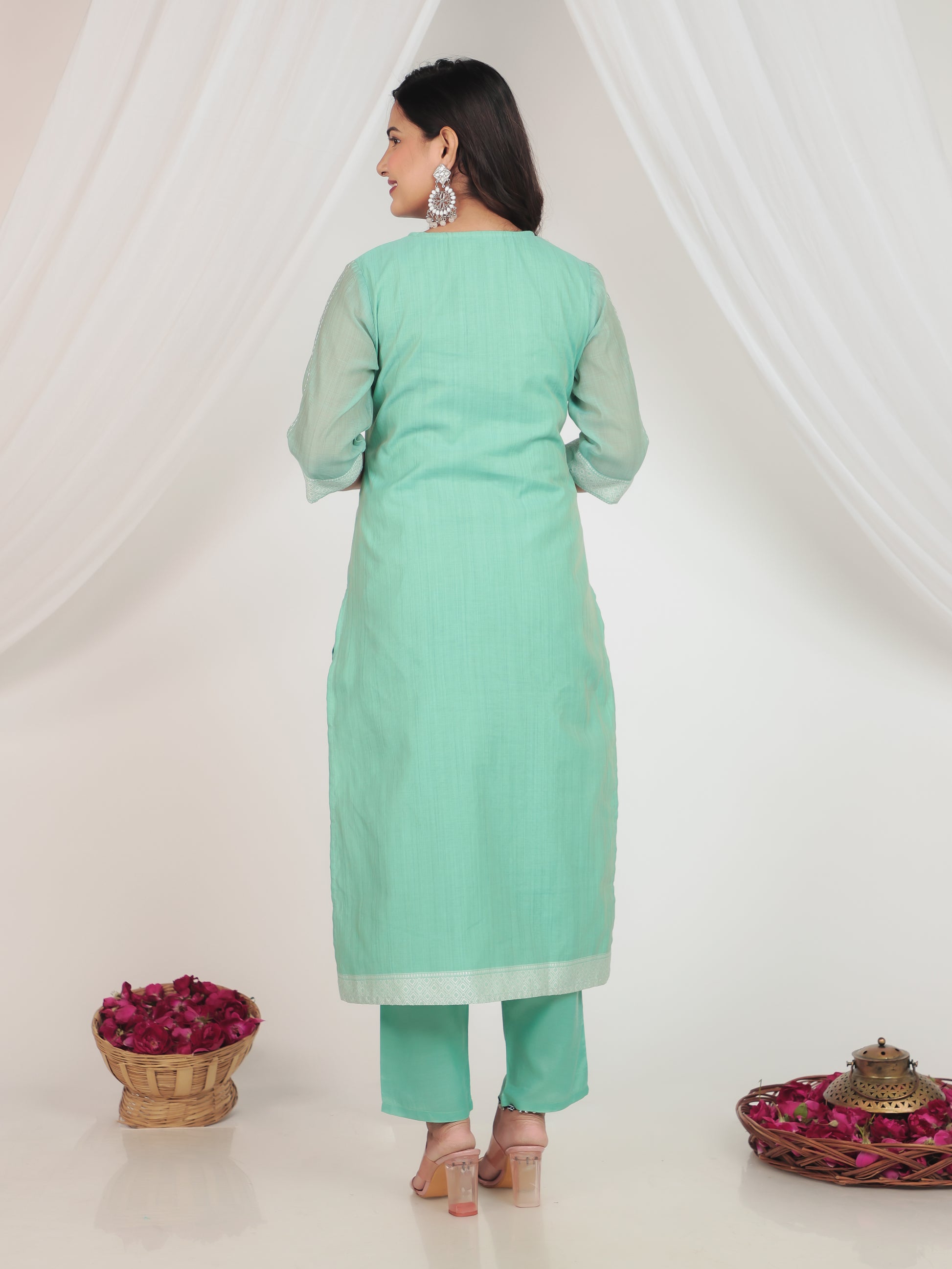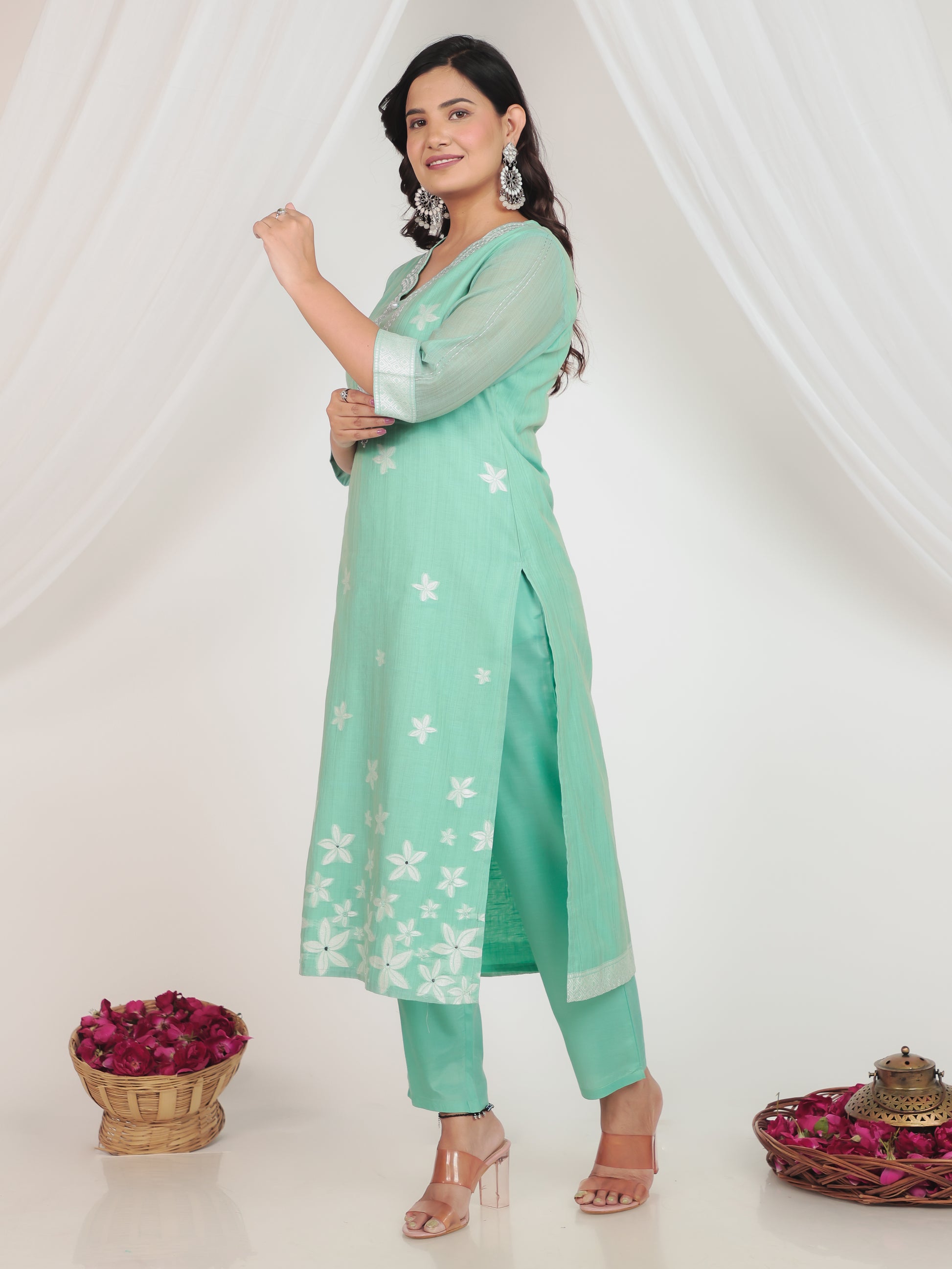 Crafted from breathable Chanderi, this Straight kurta in Green blends traditional design with everyday comfort. The Floral finish adds artisanal charm, while the Calf Length silhouette ensures effortless elegance. Style with palazzos or leggings for versatile looks, from workdays to weekend outings. Designed for easy care, this kurta stays beautiful with simple care instructions.