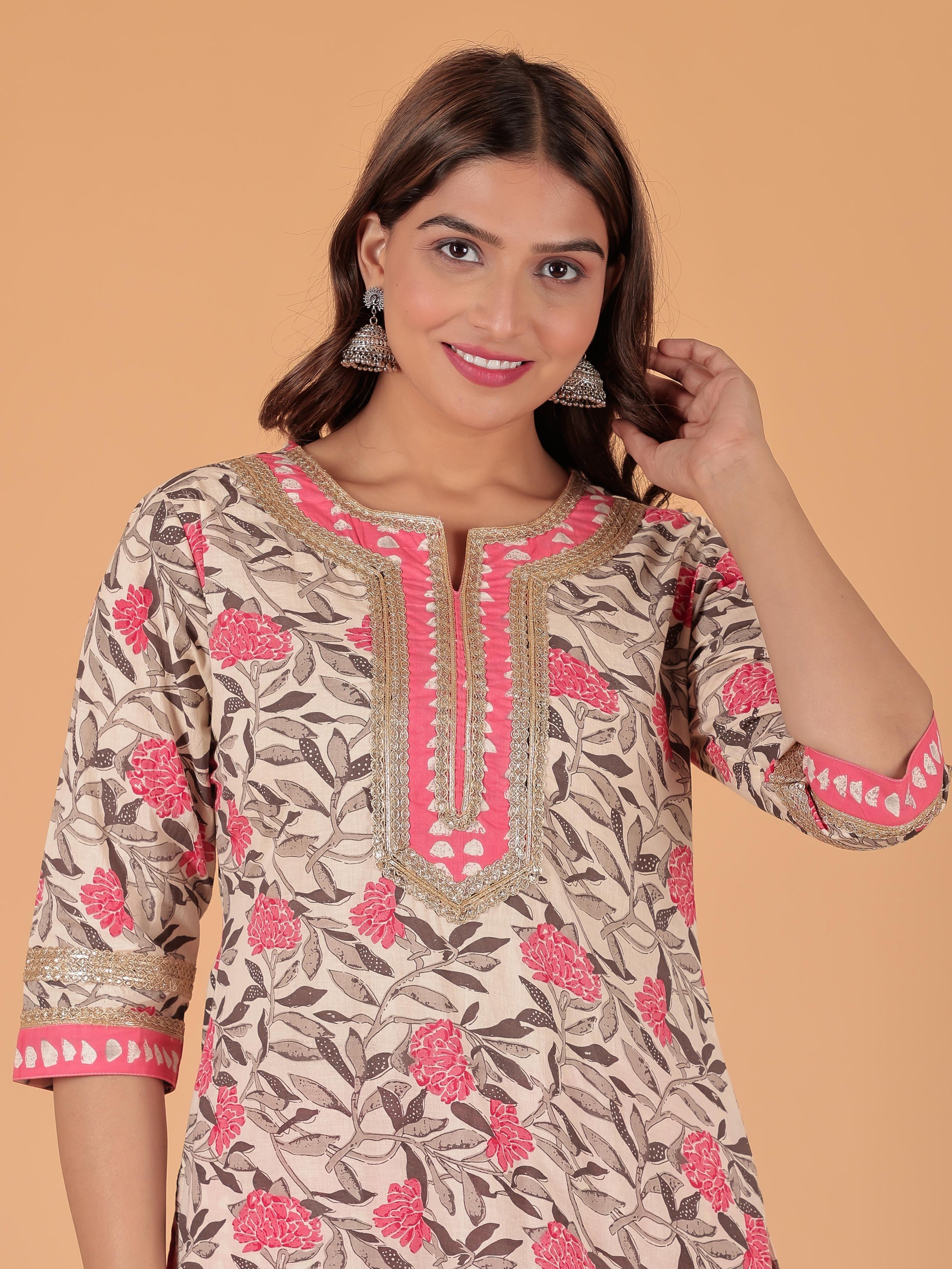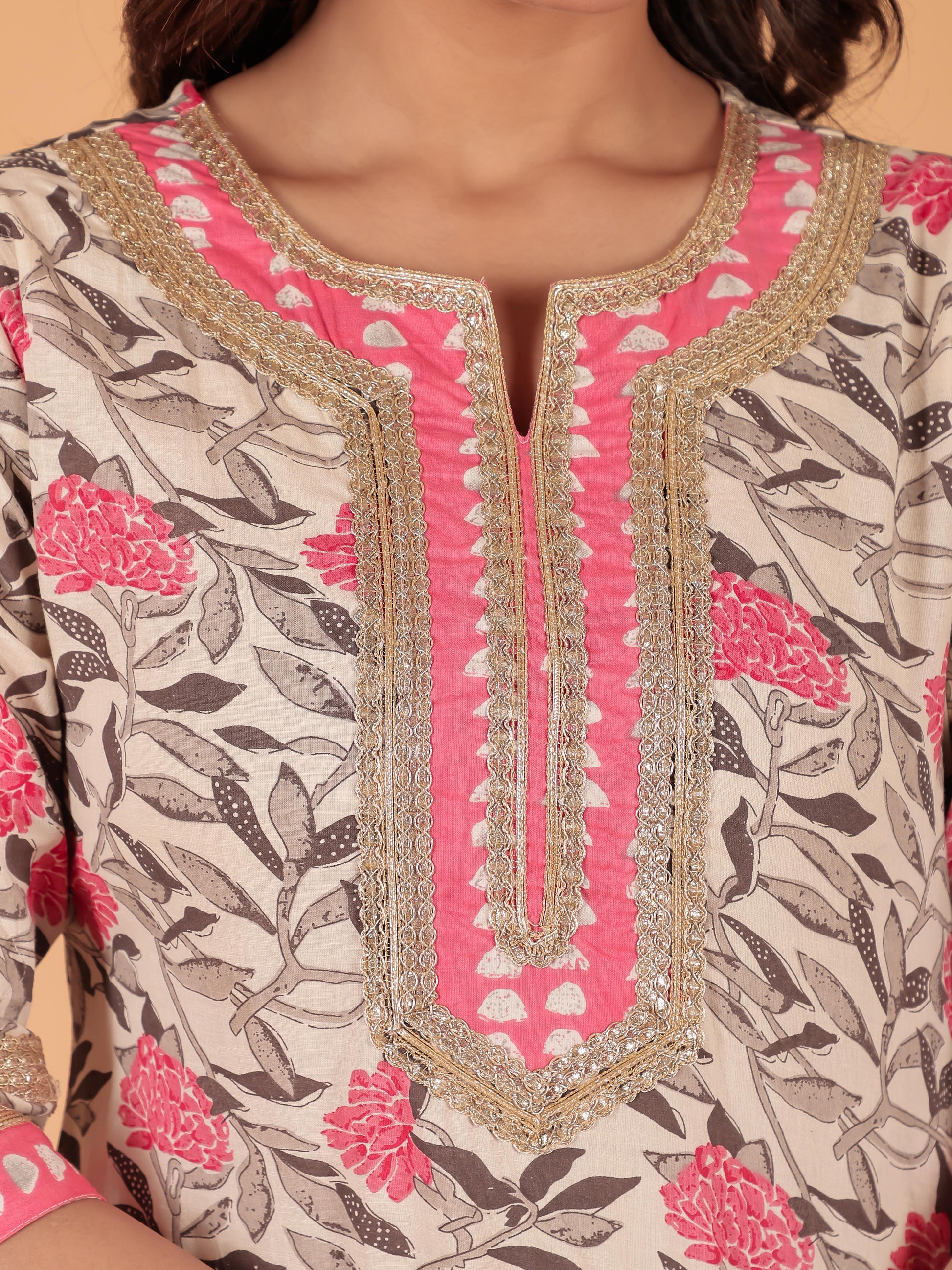 Elevate your ethnic wardrobe with this Soft Cotton kurta in a stunning Pink hue. Featuring an elegant Straight fit and striking Floral accents, it’s perfect for festive celebrations or family gatherings. The Round neckline and 3/4 Sleeve provide all-day comfort. Team with gold-toned accessories for an effortlessly chic vibe. Maintain its charm by following proper care instructions.