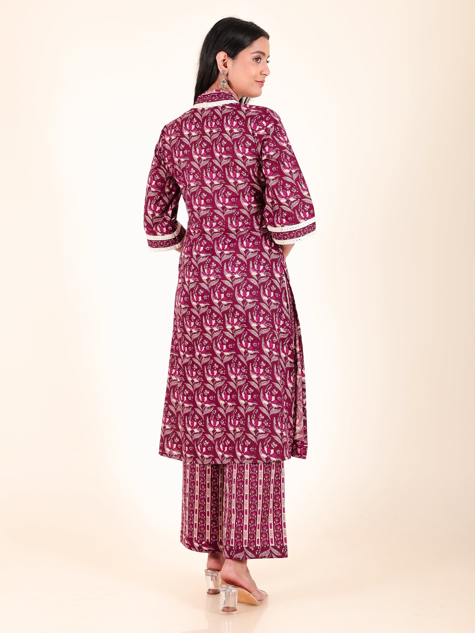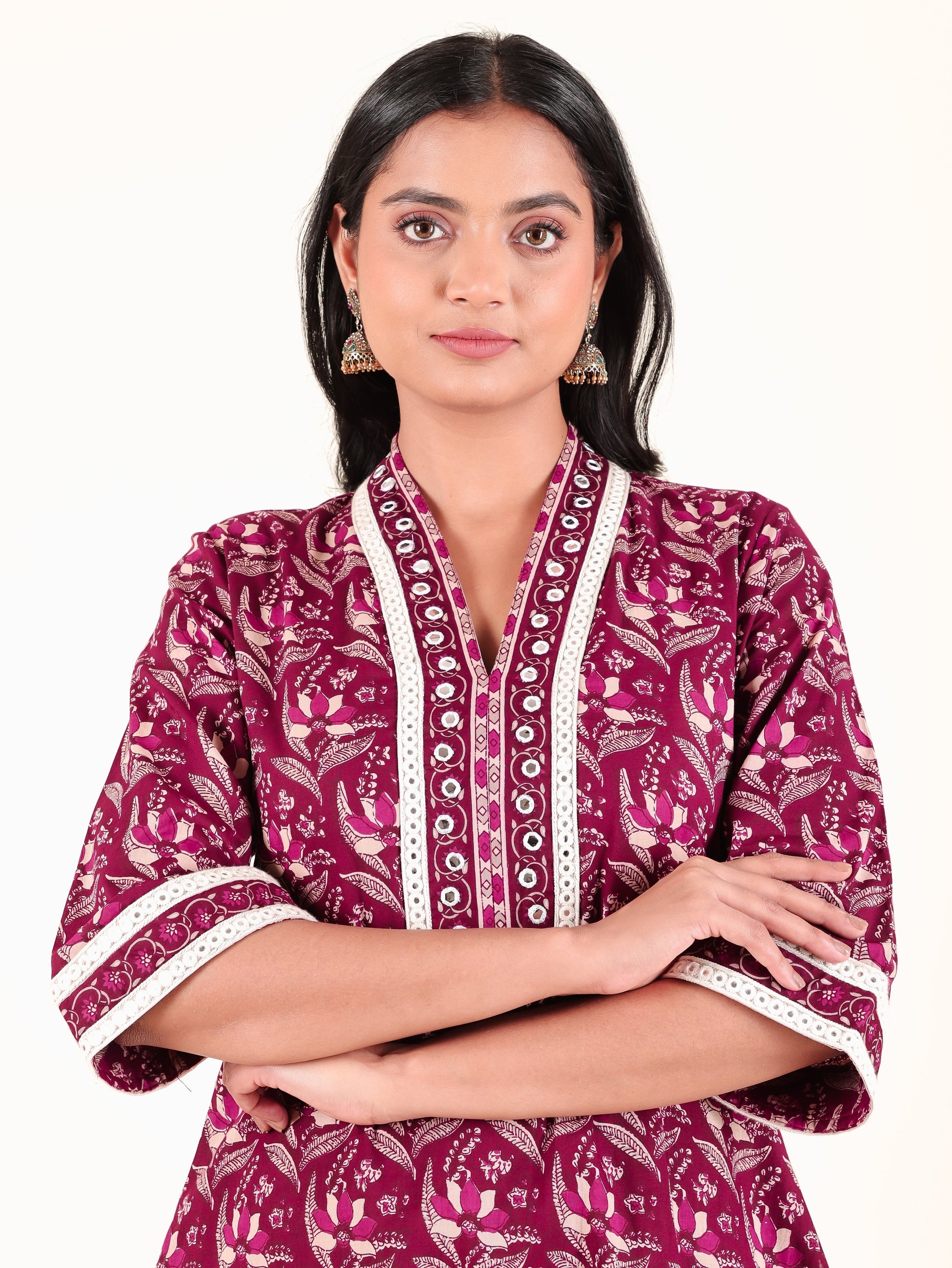 Crafted from breathable Soft Cotton, this Straight kurta in Maroon blends traditional design with everyday comfort. The Floral finish adds artisanal charm, while the Calf Length silhouette ensures effortless elegance. Style with palazzos or leggings for versatile looks, from workdays to weekend outings. Designed for easy care, this kurta stays beautiful with simple care instructions.