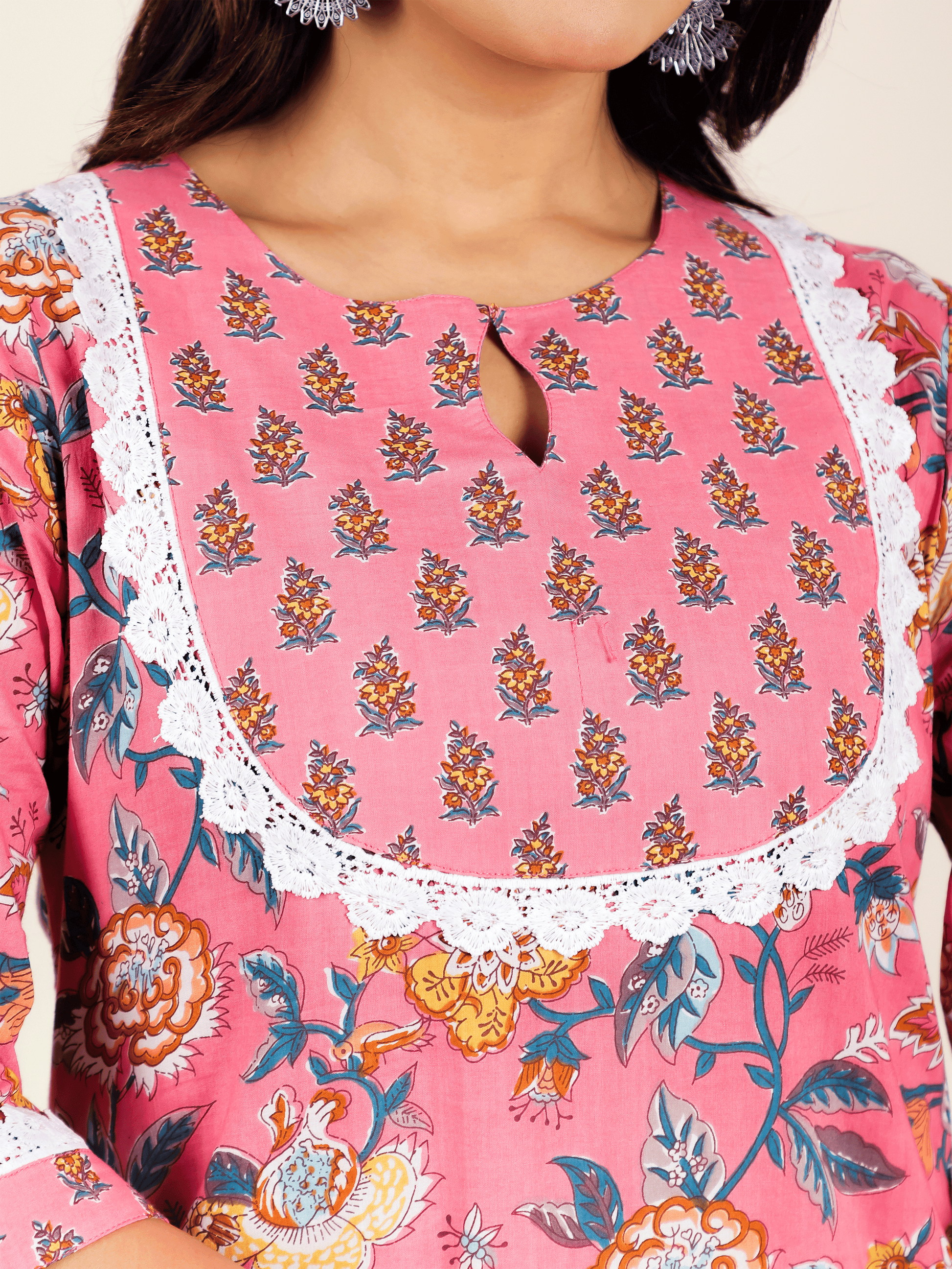 This Pink Soft Cotton kurta with a Straight flare is designed for comfort and style. Featuring a Keyhole neckline, 3/4 Sleeve sleeves, and a graceful Calf Length hemline, it’s perfect for festive wear or semi-formal gatherings. The Floral highlights add depth and texture, making it a standout piece. Accessorise with a contrasting dupatta and keep it pristine by following proper care instructions.