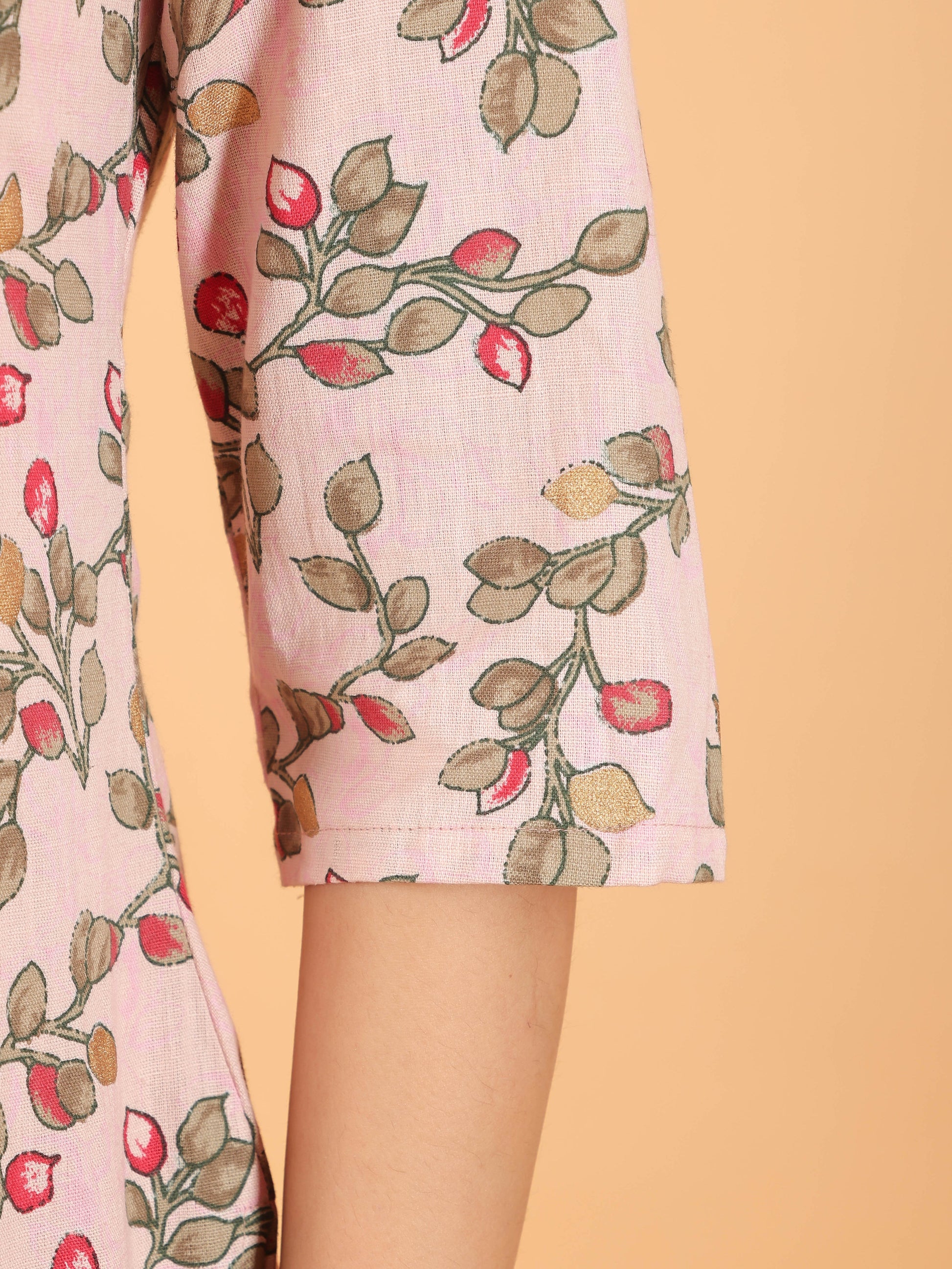 Linen Cotton Floral Straight Pink Kurta