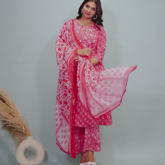 Elevate your ethnic wardrobe with this Kantha Cotton kurta in a stunning Pink hue. Featuring an elegant Panelled fit and striking Floral accents, it’s perfect for festive celebrations or family gatherings. The Round neckline and 3/4 Sleeve provide all-day comfort. Team with gold-toned accessories for an effortlessly chic vibe. Maintain its charm by following proper care instructions.