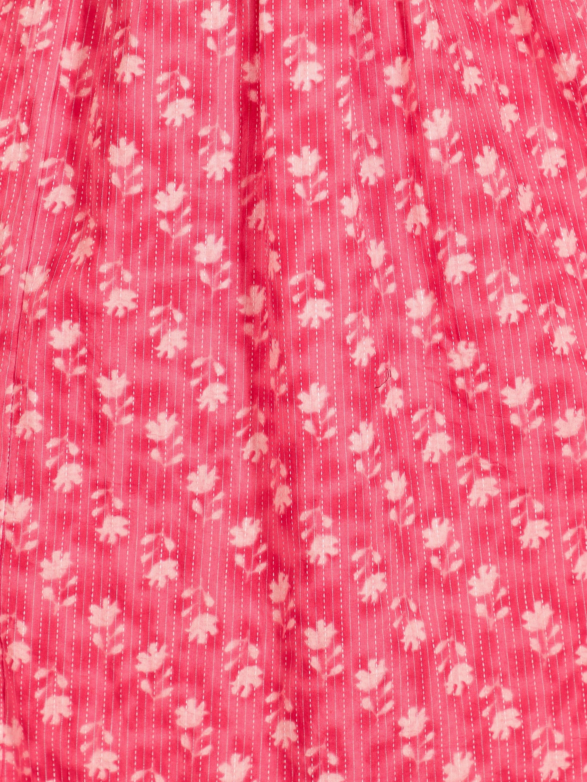 Kantha Cotton Floral Panelled Pink Kurta
