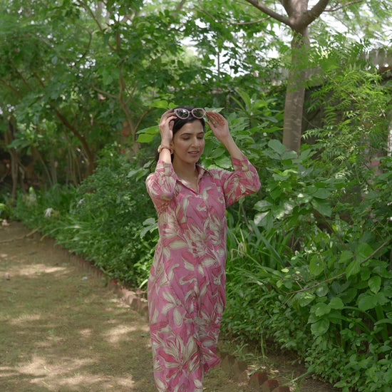 This Pink Soft Cotton kurta with a High Low flare is designed for comfort and style. Featuring a Collared neckline, 3/4 Sleeve sleeves, and a graceful Calf Length hemline, it’s perfect for festive wear or semi-formal gatherings. The Floral highlights add depth and texture, making it a standout piece. Accessorise with a contrasting dupatta and keep it pristine by following proper care instructions.