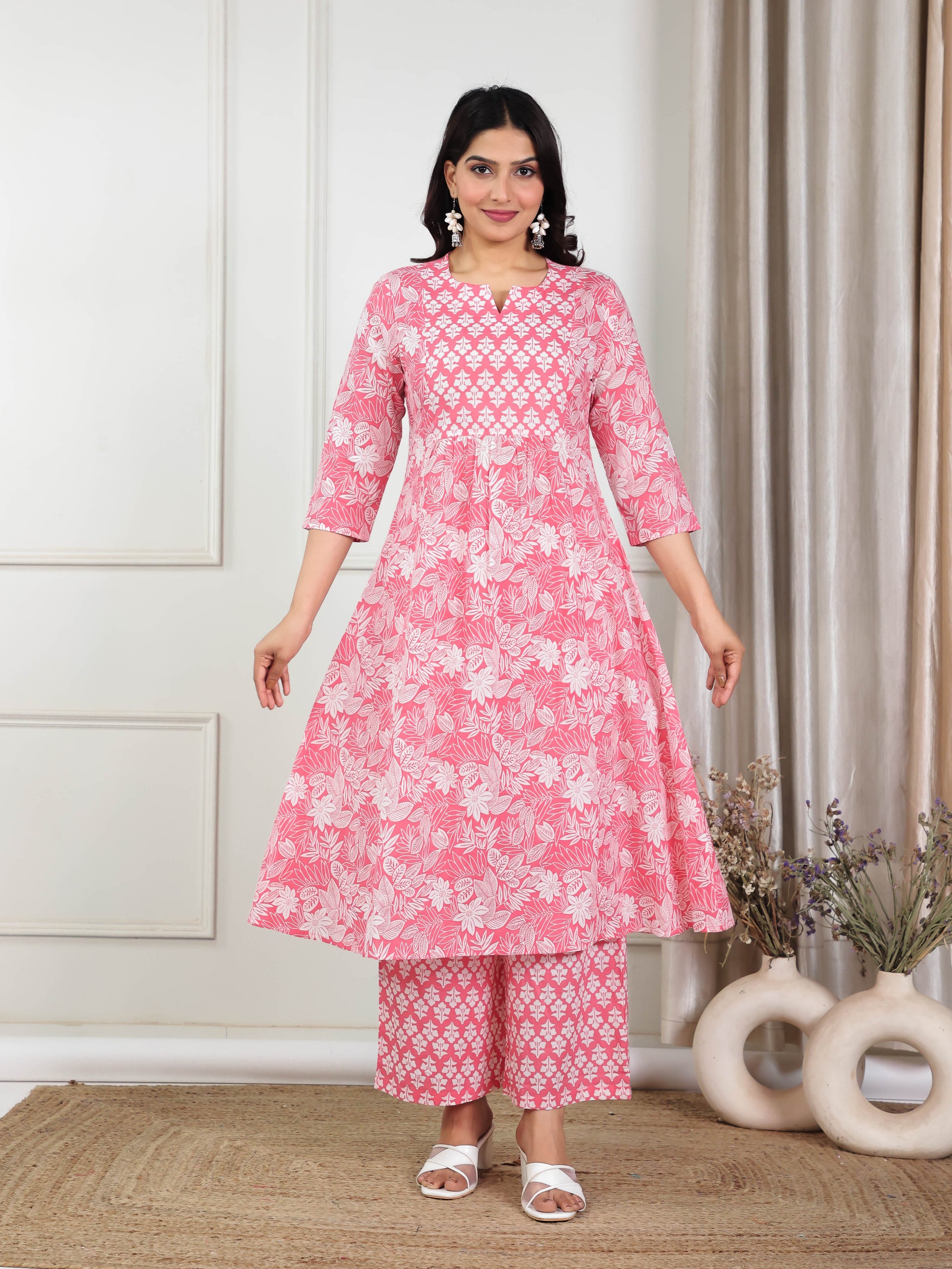 Crafted from breathable Soft Cotton, this Panelled kurta in Pink blends traditional design with everyday comfort. The Floral finish adds artisanal charm, while the Calf Length silhouette ensures effortless elegance. Style with palazzos or leggings for versatile looks, from workdays to weekend outings. Designed for easy care, this kurta stays beautiful with simple care instructions.