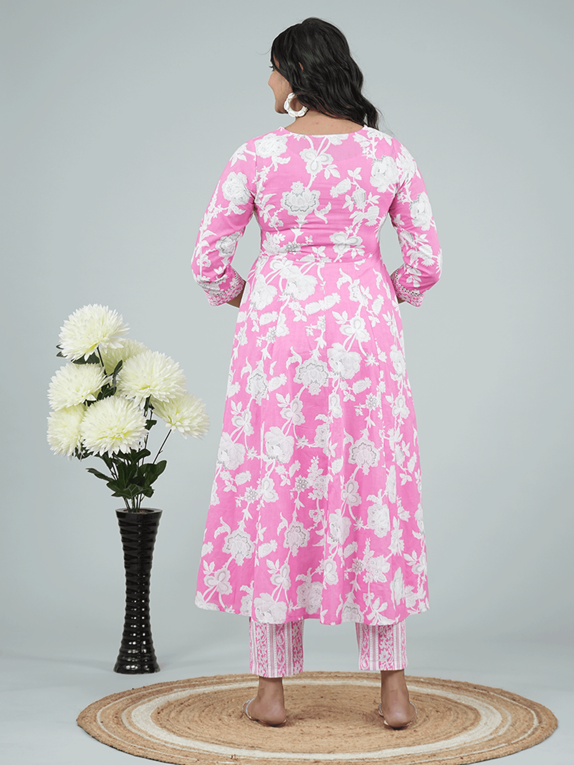 Elevate your ethnic wardrobe with this Soft Cotton kurta in a stunning Pink hue. Featuring an elegant Flared fit and striking Floral accents, it’s perfect for festive celebrations or family gatherings. The Scallop neckline and 3/4 Sleeve provide all-day comfort. Team with gold-toned accessories for an effortlessly chic vibe. Maintain its charm by following proper care instructions.