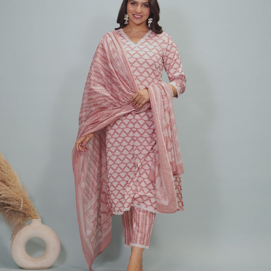 Crafted from breathable Soft Cotton, this Straight kurta in Pink blends traditional design with everyday comfort. The Geometric finish adds artisanal charm, while the Calf Length silhouette ensures effortless elegance. Style with palazzos or leggings for versatile looks, from workdays to weekend outings. Designed for easy care, this kurta stays beautiful with simple care instructions.