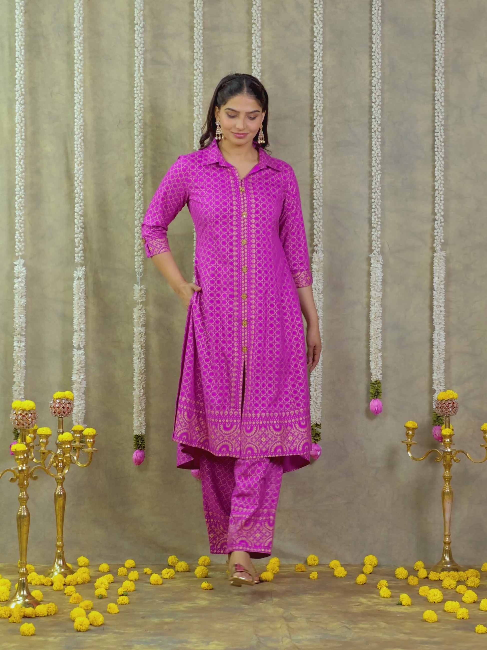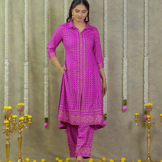 Viscose Gold foil High Low Pink Kurta