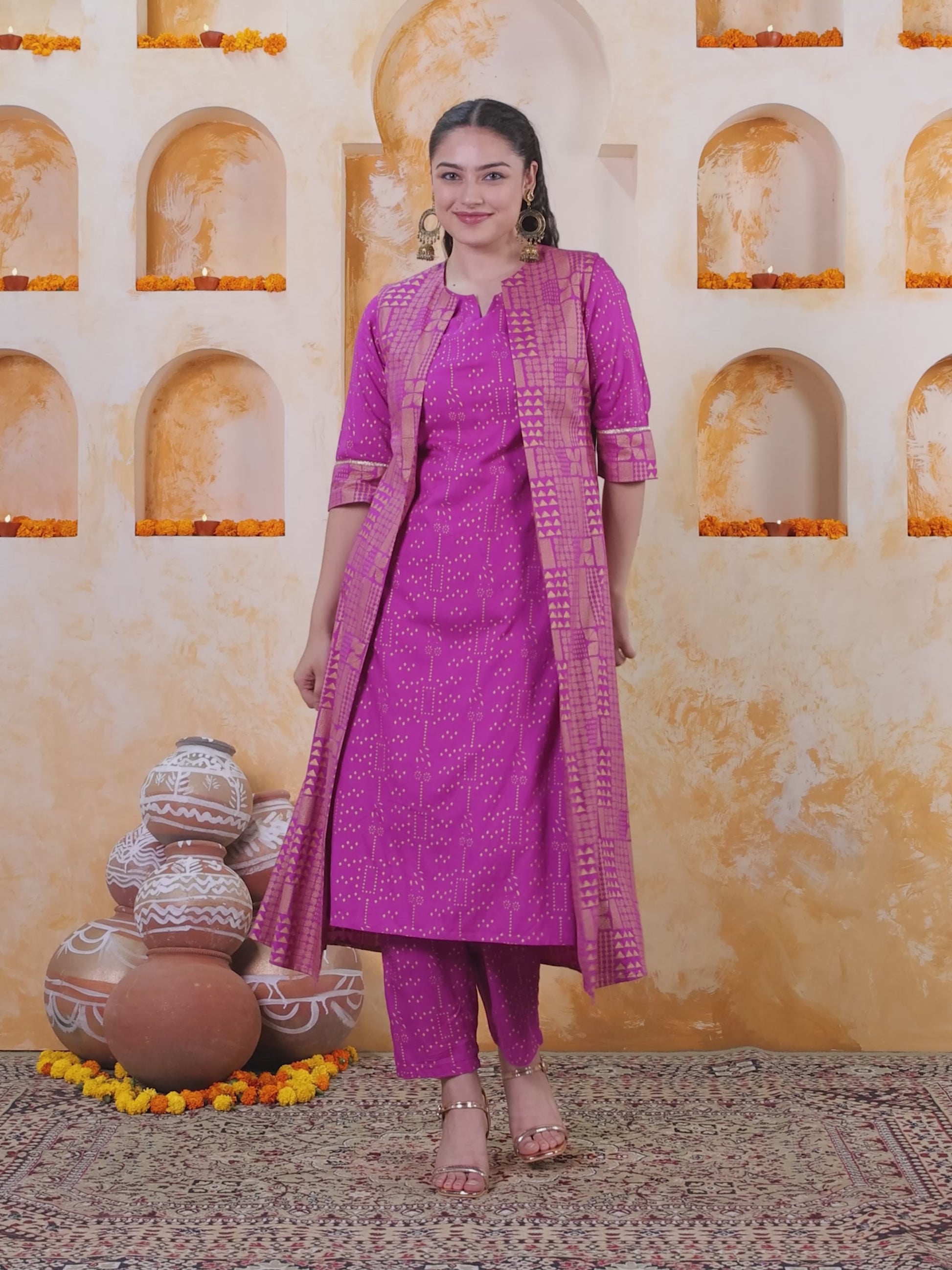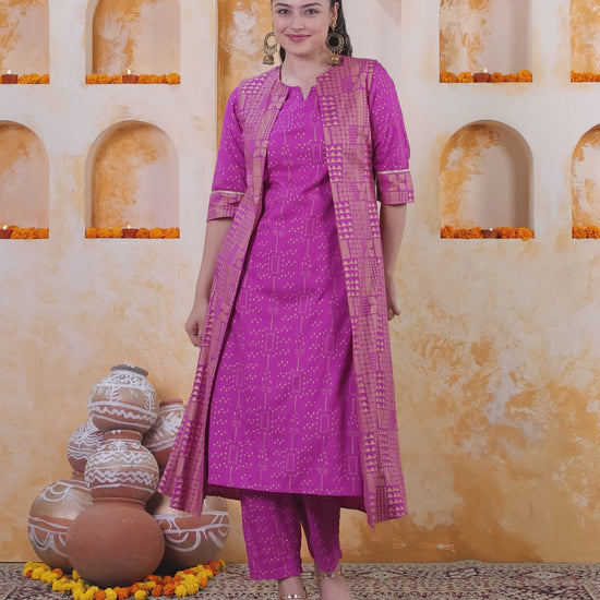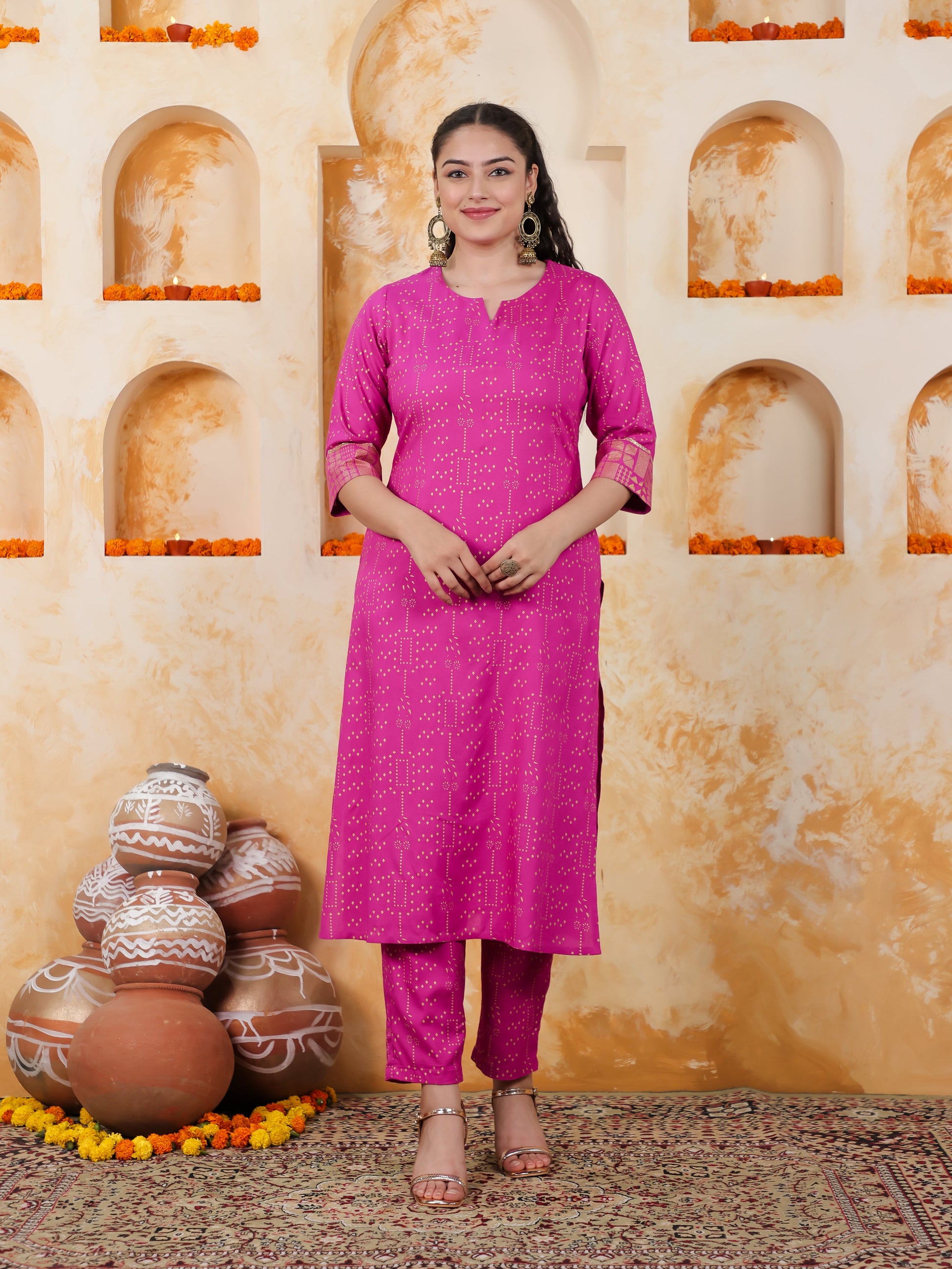 Viscose Gold foil Straight Pink Kurta