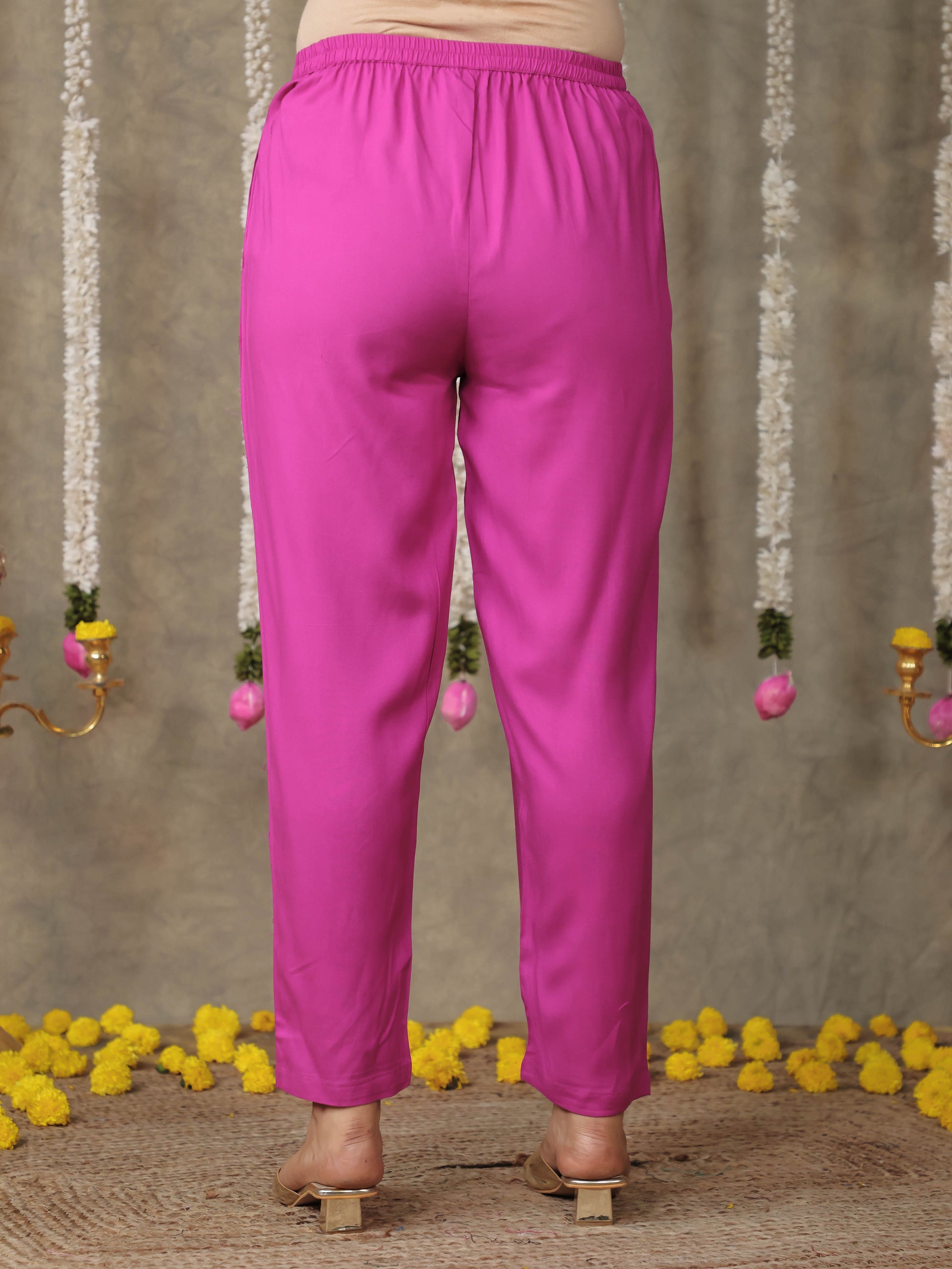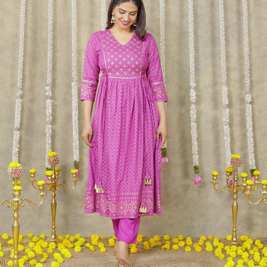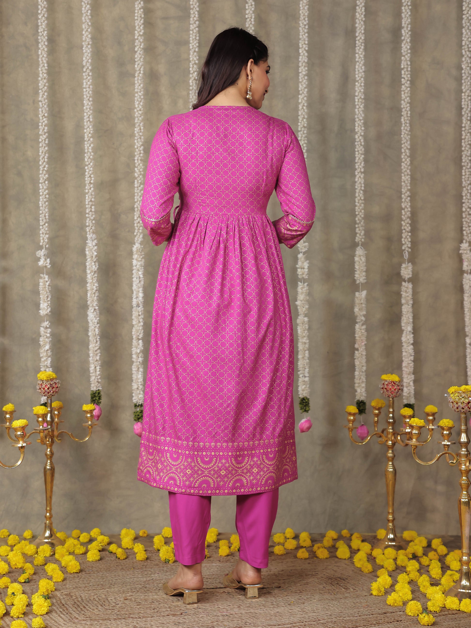 Embroidered Viscose Gold foil Flared Pink Kurta