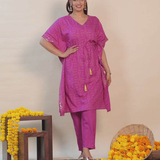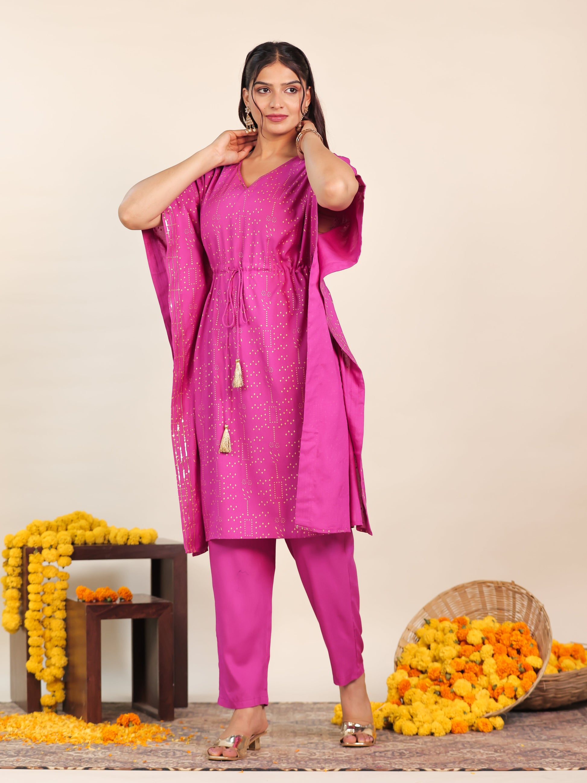 Embroidered Viscose Gold foil Kaftan Pink Kurta