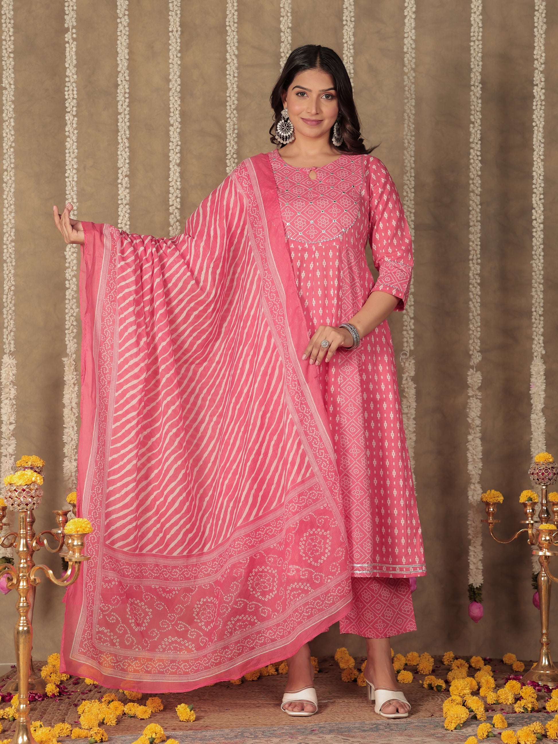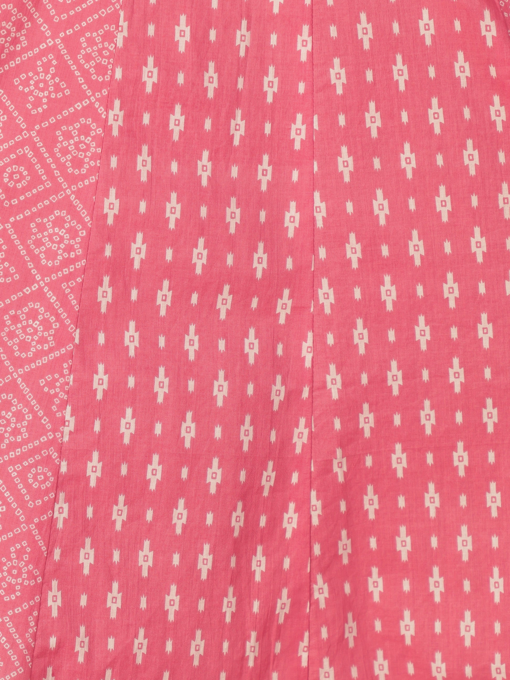 Soft Cotton Ikat Anarkali Pink Kurta