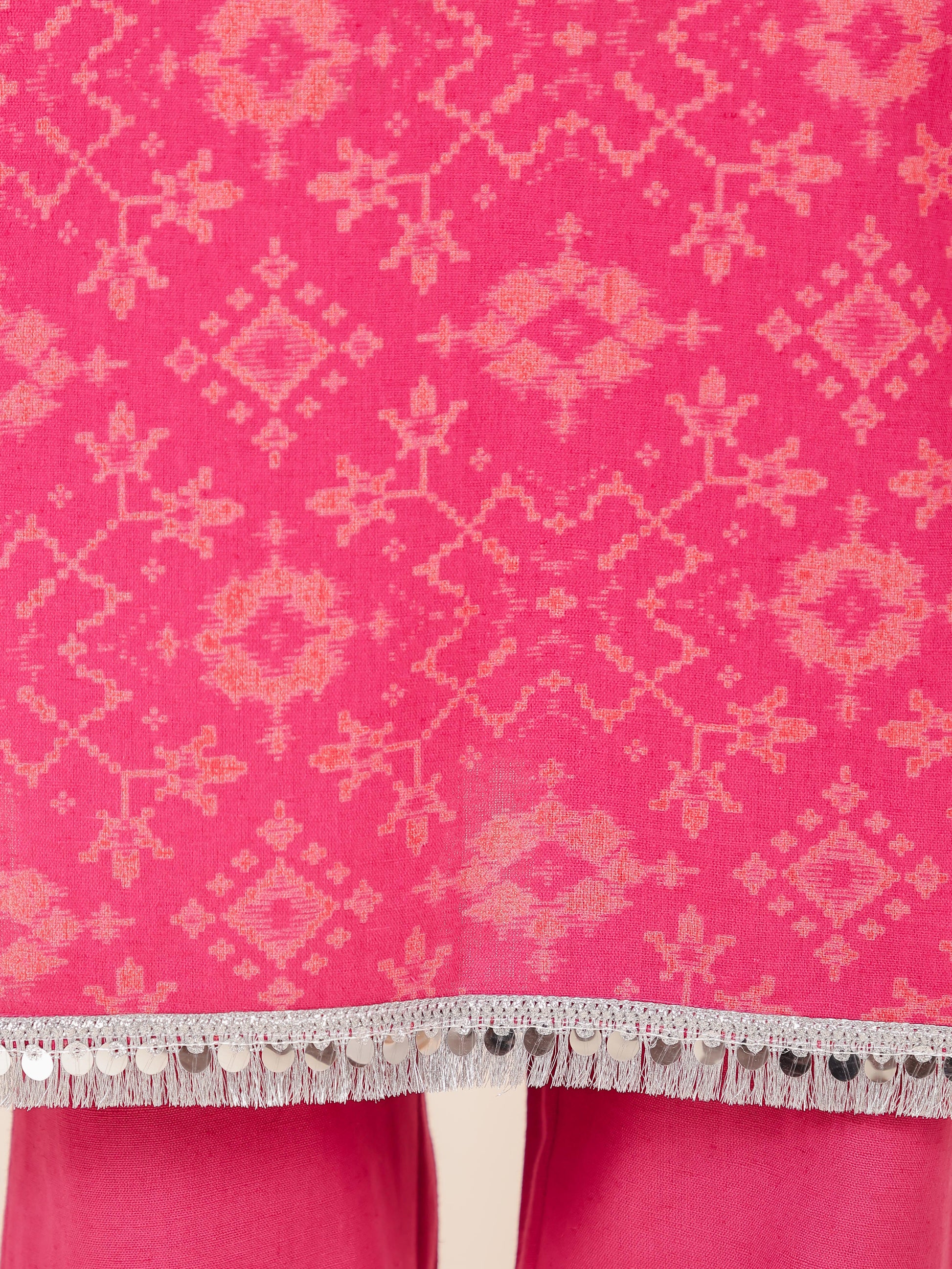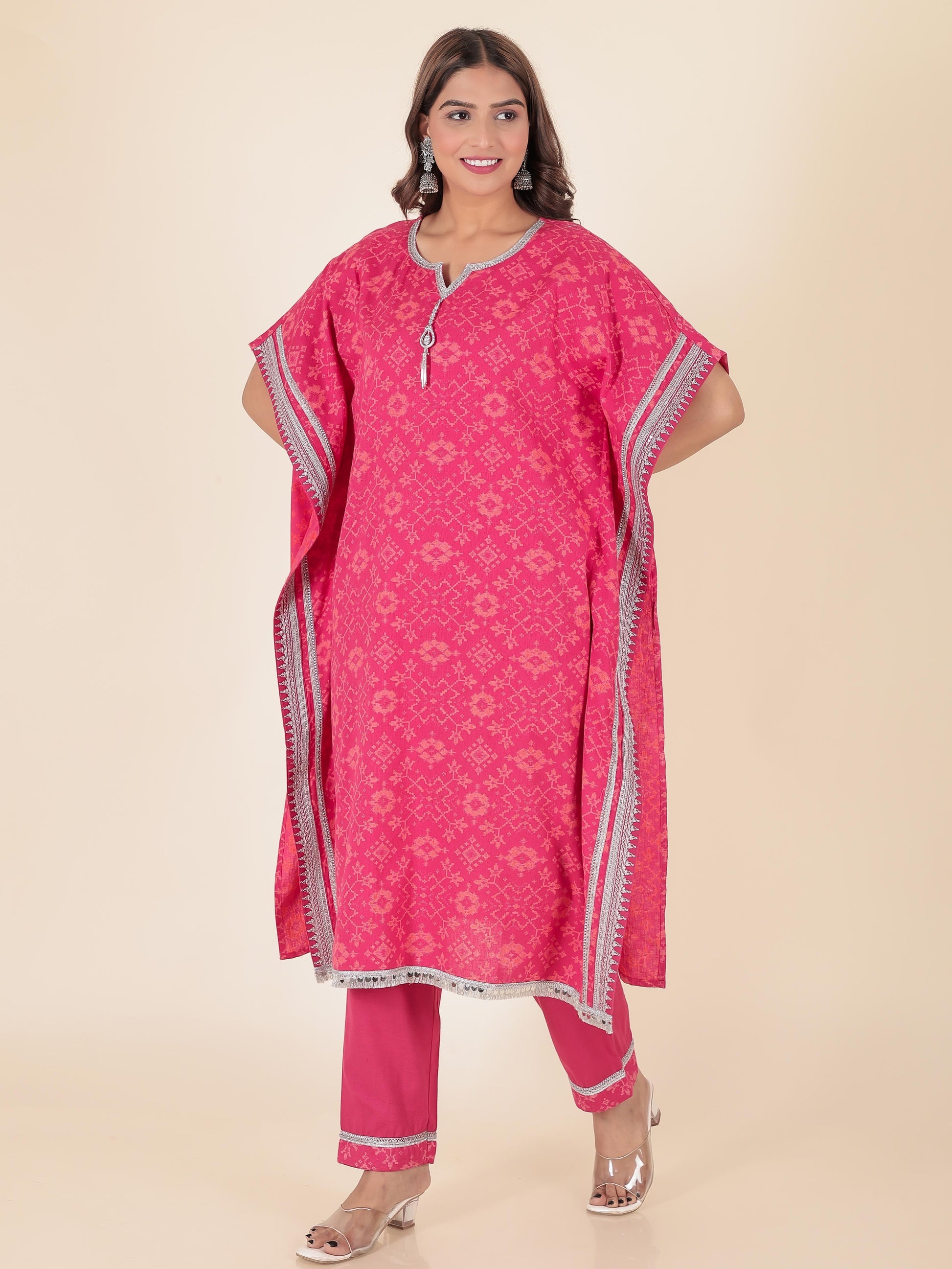 Linen Cotton Ikat Kaftan Pink Kurta