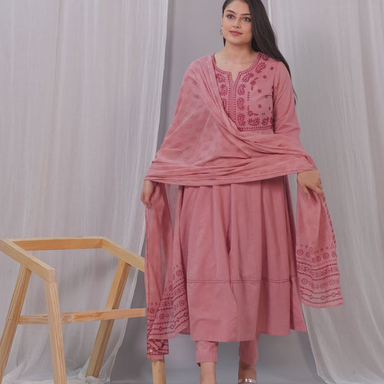 Embroidered Natural Cotton Solid Anarkali Pink Kurta