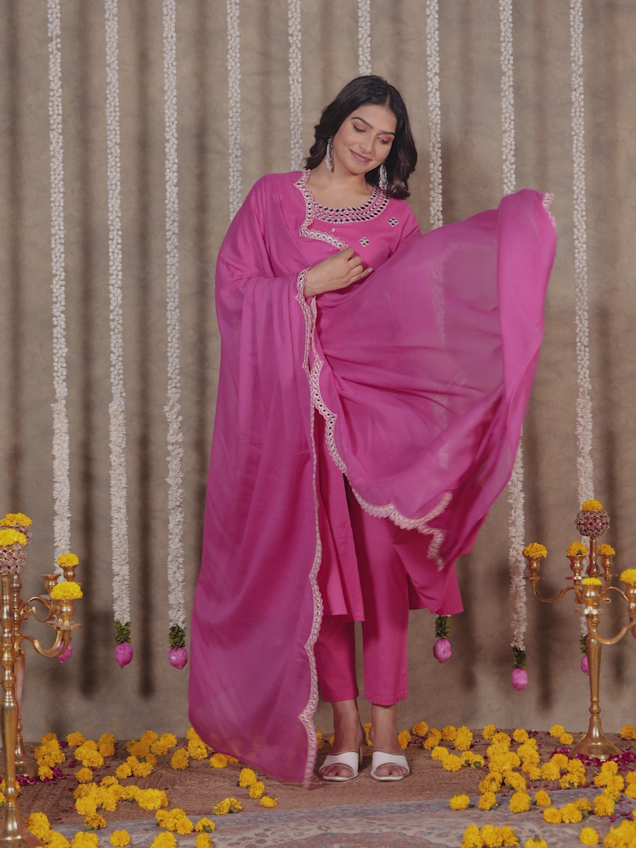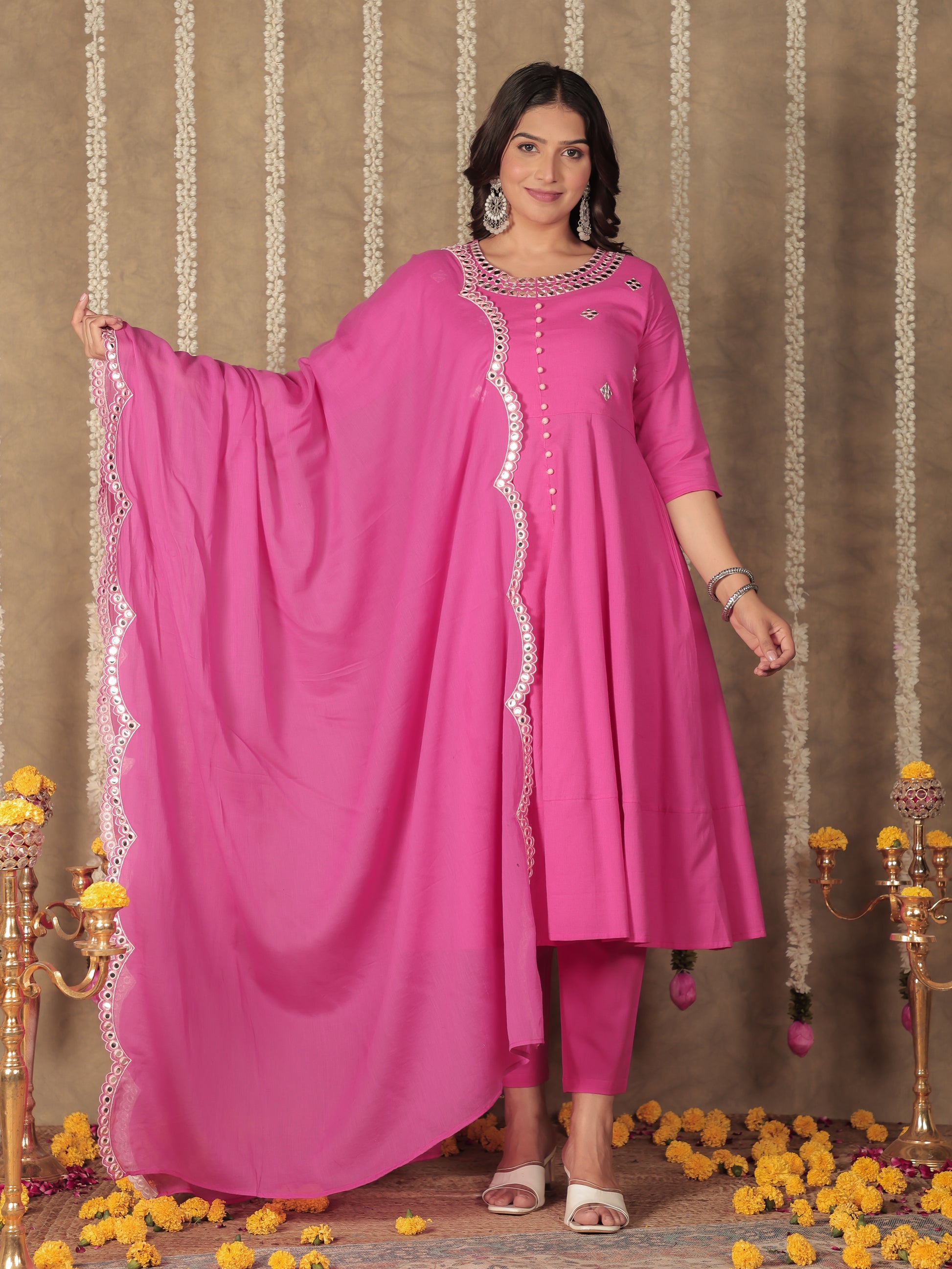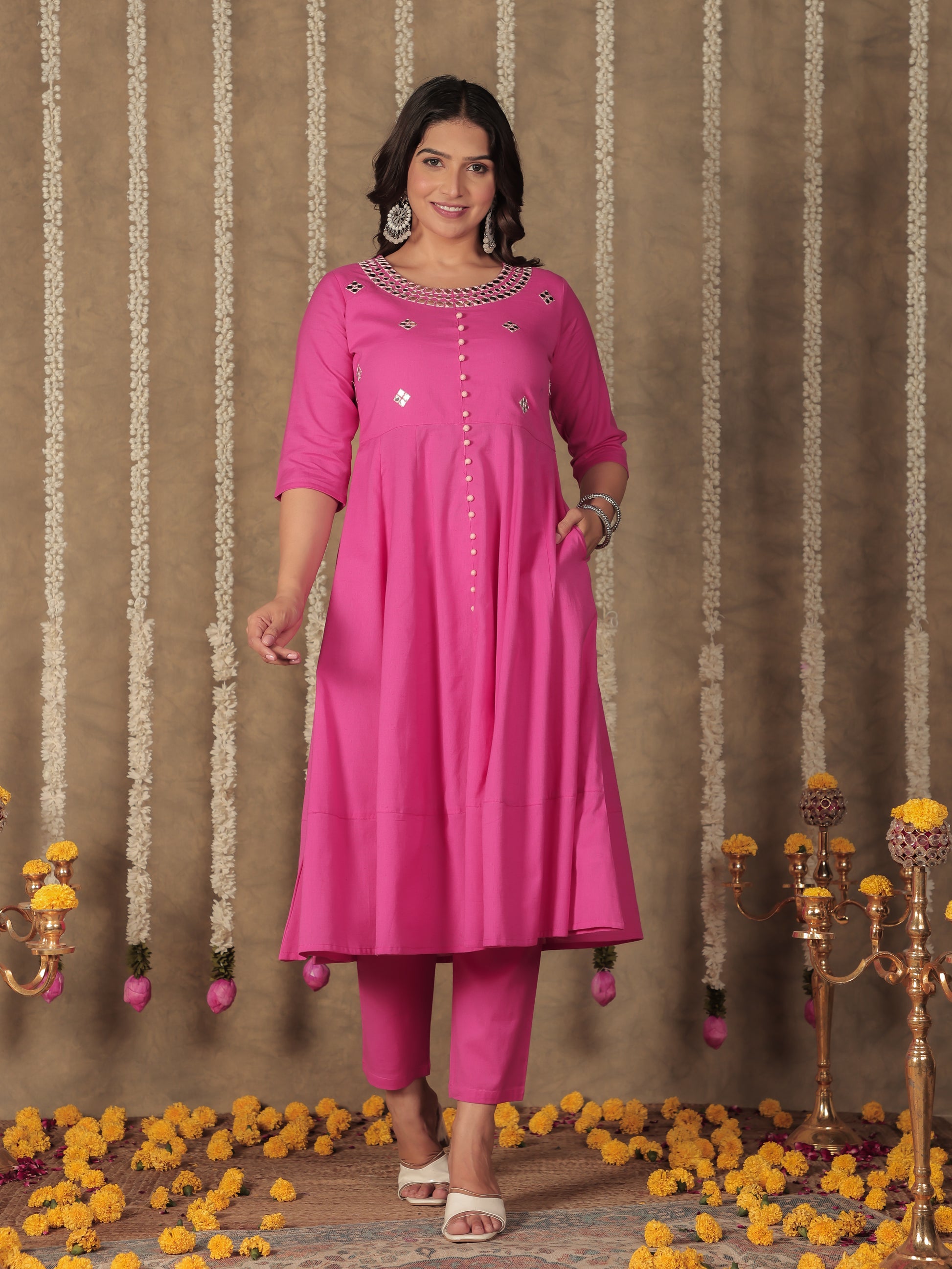This Pink Linen Cotton kurta with a Anarkali flare is designed for comfort and style. Featuring a Round neckline, 3/4 Sleeve sleeves, and a graceful Calf Length hemline, it’s perfect for festive wear or semi-formal gatherings. The Solid highlights add depth and texture, making it a standout piece. Accessorise with a contrasting dupatta and keep it pristine by following proper care instructions.