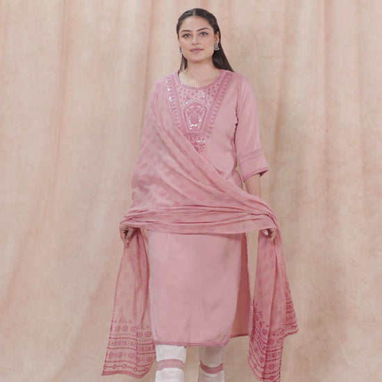 Embroidered Viscose Solid Straight Pink Kurta