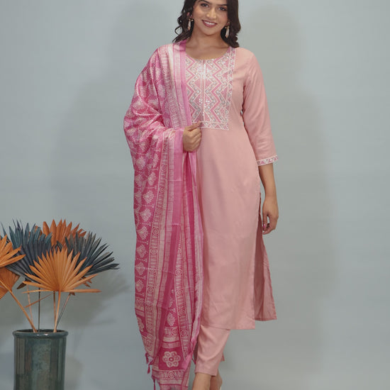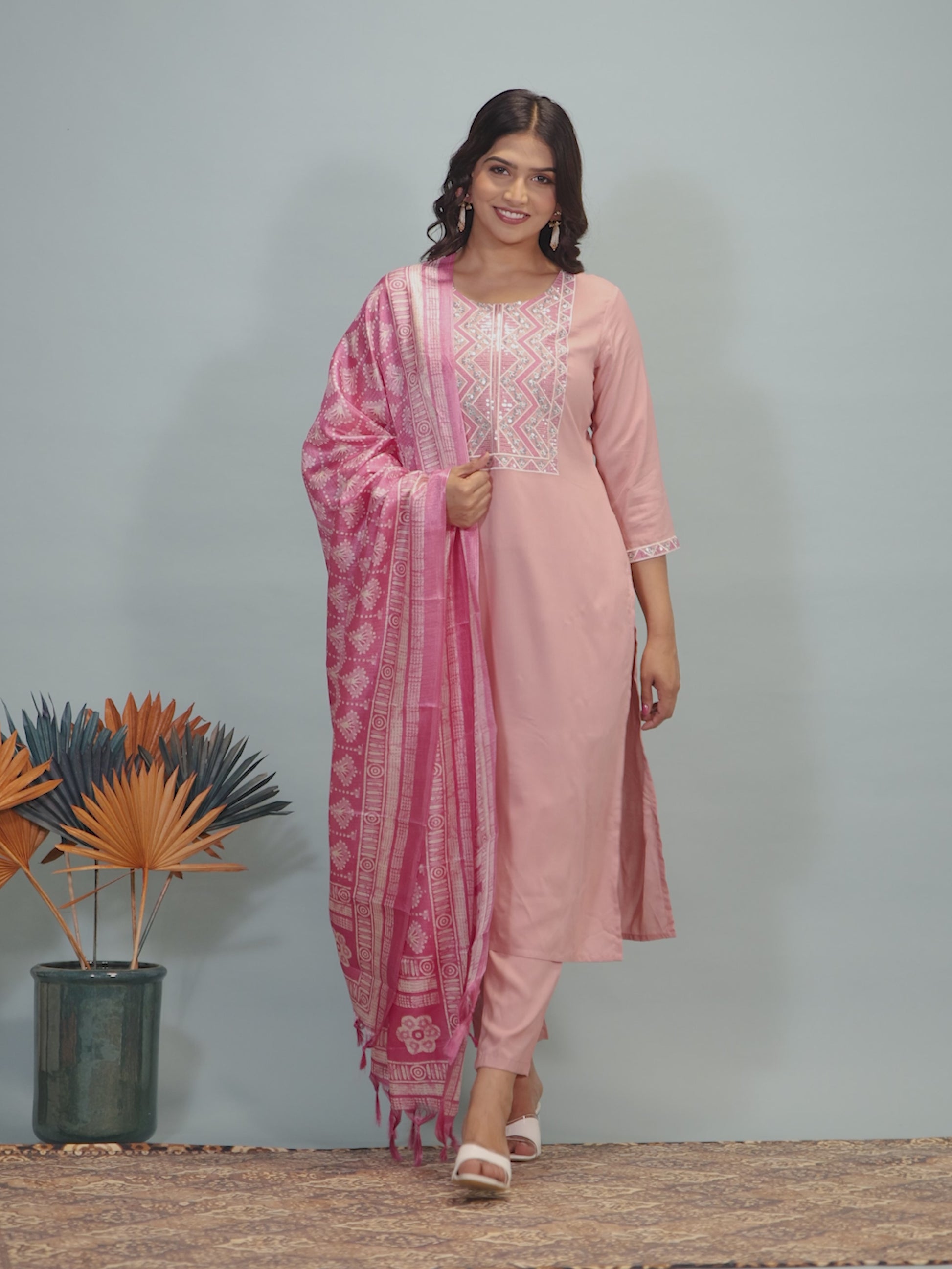 Embroidered Soft Cotton Solid Straight Pink Kurta