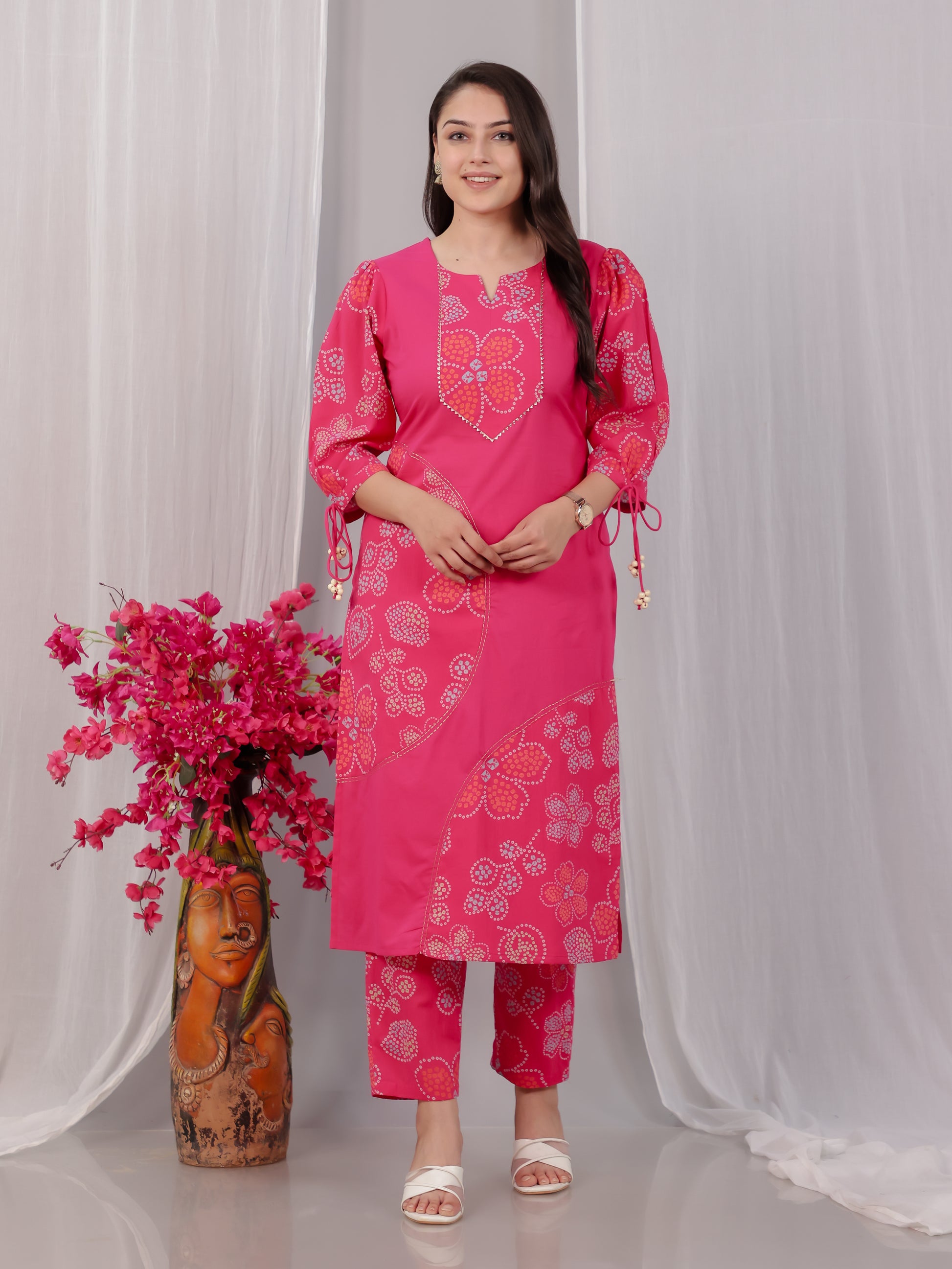 Embroidered Soft Cotton Solid Straight Pink Kurta