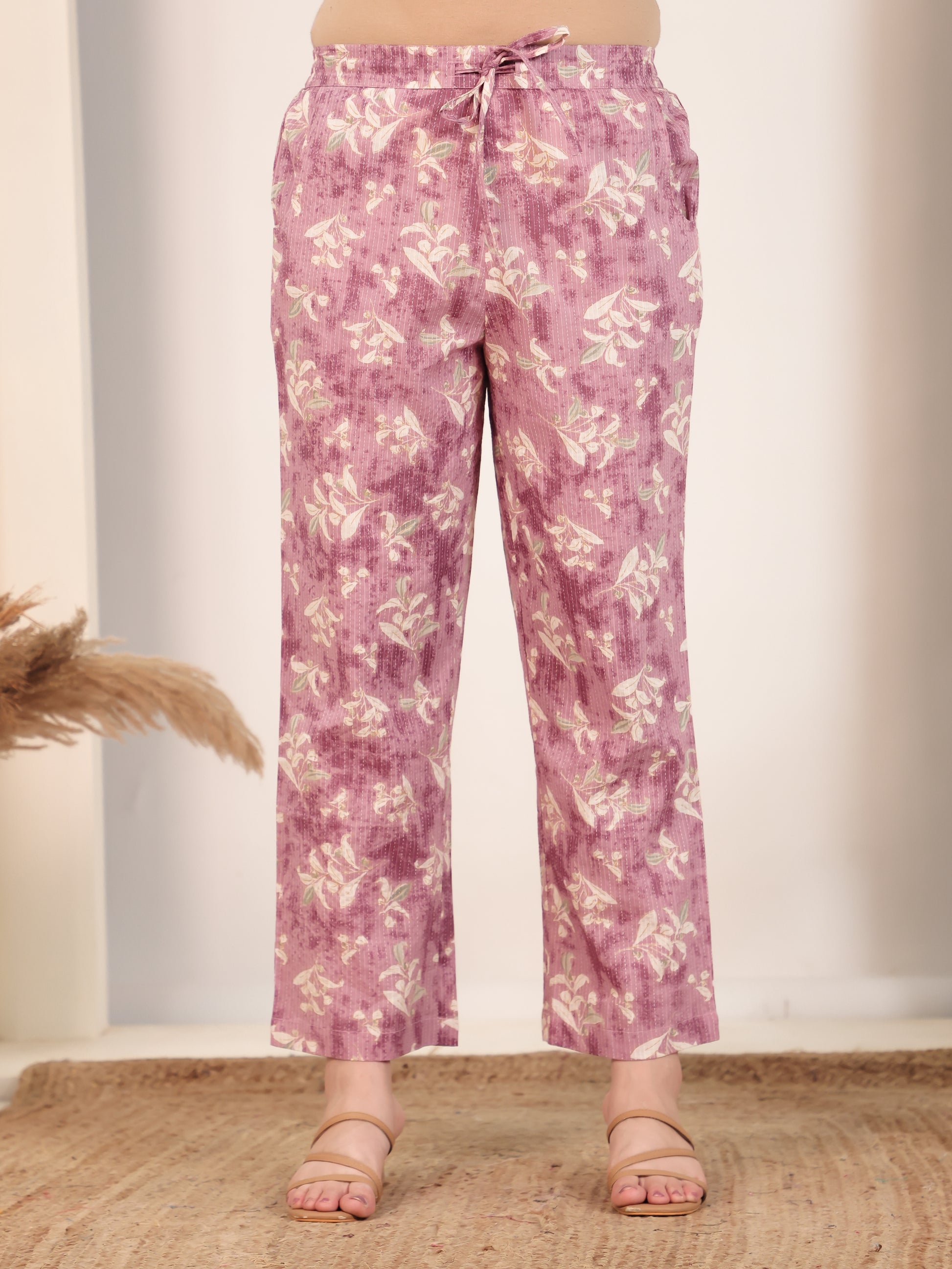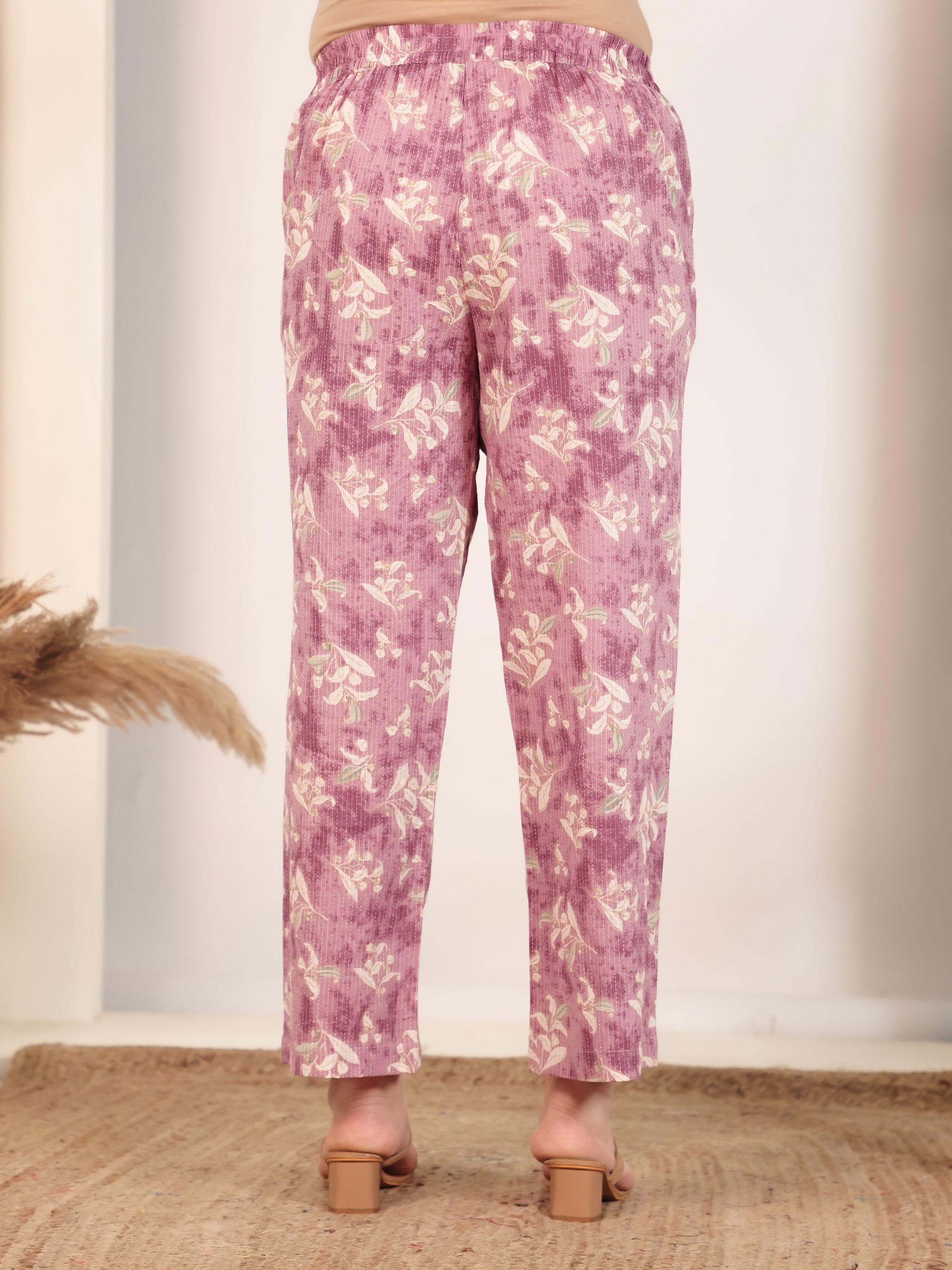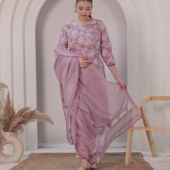 This Mauve A-line kurta in soft Kantha Cotton is a timeless pick for festive and casual wear. Designed with a Round neckline and 3/4 Sleeve sleeves, its graceful Calf Length cut flatters all body types. The delicate Floral detailing adds a touch of sophistication. Pair it with statement earrings and juttis for a polished look. Maintain its pristine look by following proper care instructions.
