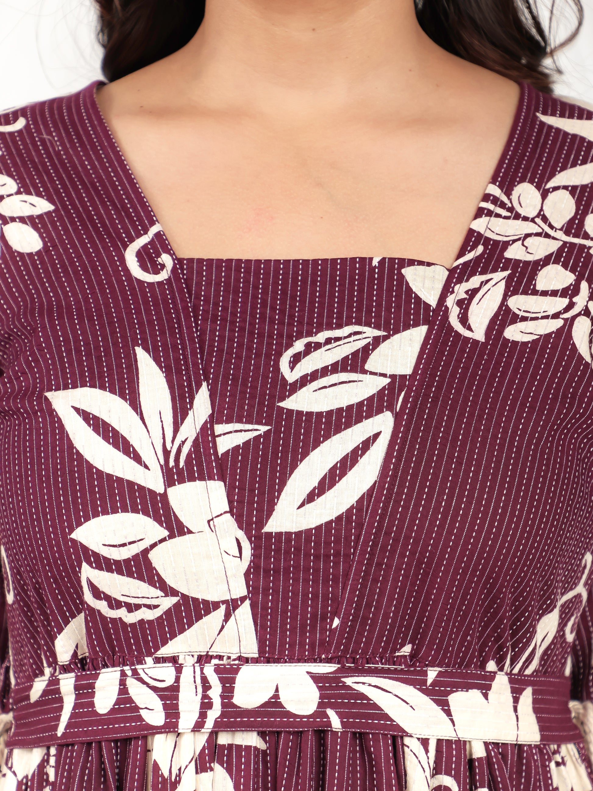 Designed for comfort and confidence, this Kantha Cotton dress in Purple features a flattering Anarkali silhouette and unique Floral accents. The work detailing adds sophistication, making it perfect for coffee dates, casual evenings, or weekend brunches. Accessorise with minimal jewellery and flats for a polished finish.