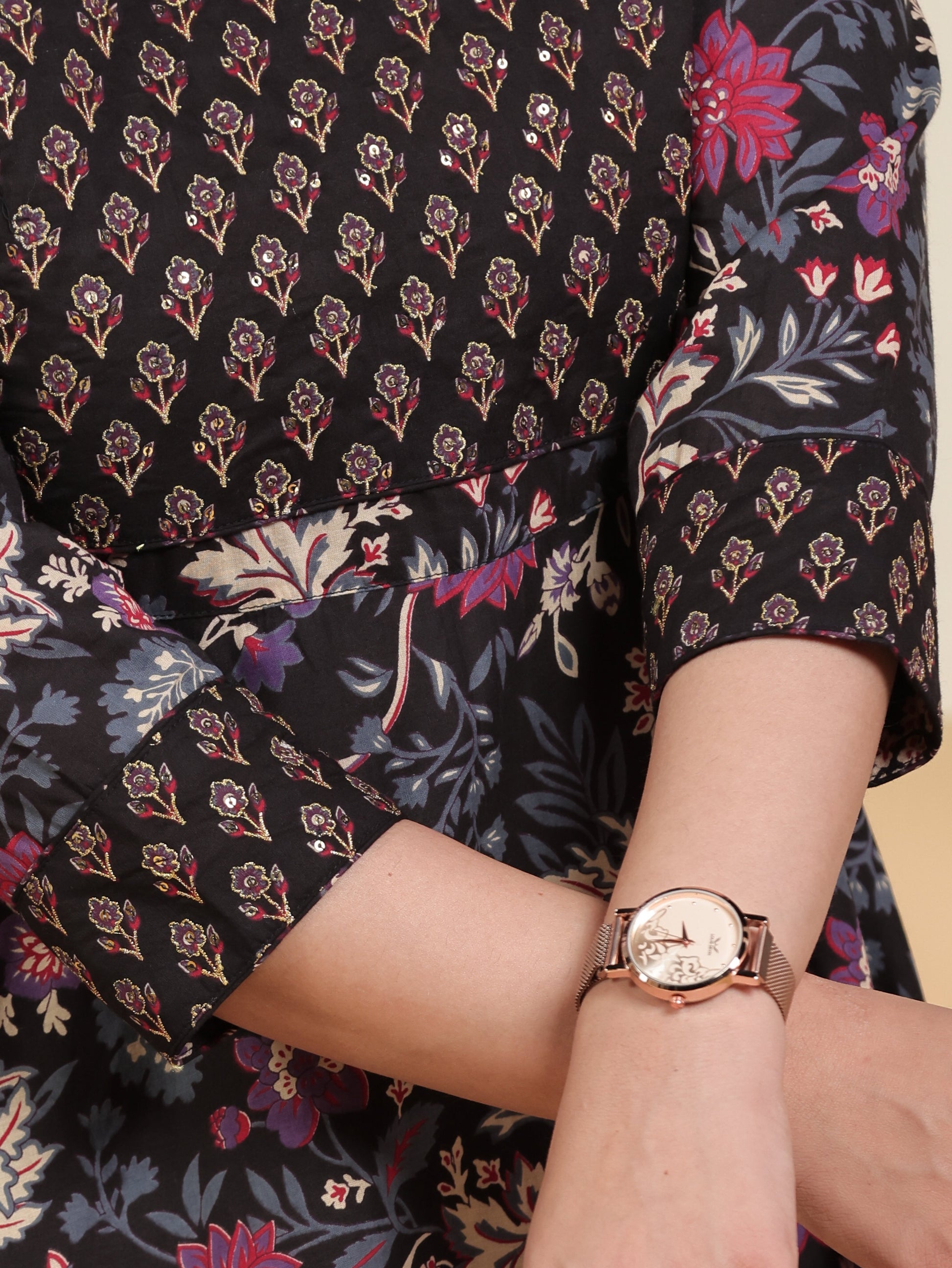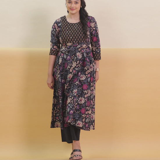 Embroidered Soft Cotton Floral Anarkali Purple Kurta