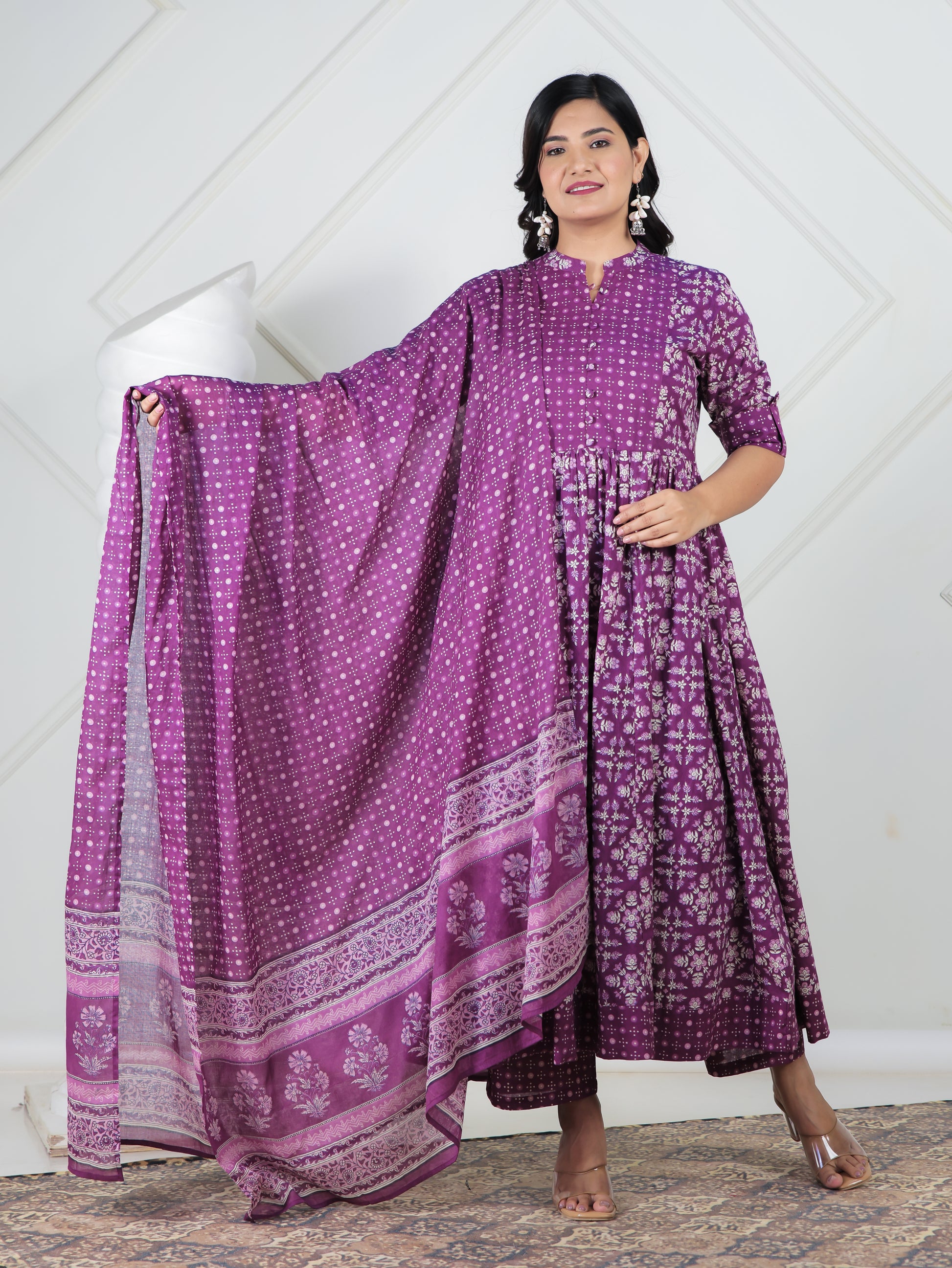 Elevate your ethnic wardrobe with this Soft Cotton kurta in a stunning Purple hue. Featuring an elegant Panelled fit and striking Floral accents, it’s perfect for festive celebrations or family gatherings. The Mandarin Collar neckline and Half Sleeves provide all-day comfort. Team with gold-toned accessories for an effortlessly chic vibe. Maintain its charm by following proper care instructions.