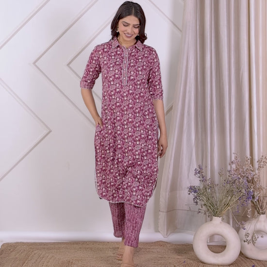 This Purple Pathani kurta in soft Soft Cotton is a timeless pick for festive and casual wear. Designed with a Collared neckline and Elbow Length Sleeve sleeves, its graceful Calf Length cut flatters all body types. The delicate Floral detailing adds a touch of sophistication. Pair it with statement earrings and juttis for a polished look. Maintain its pristine look by following proper care instructions.