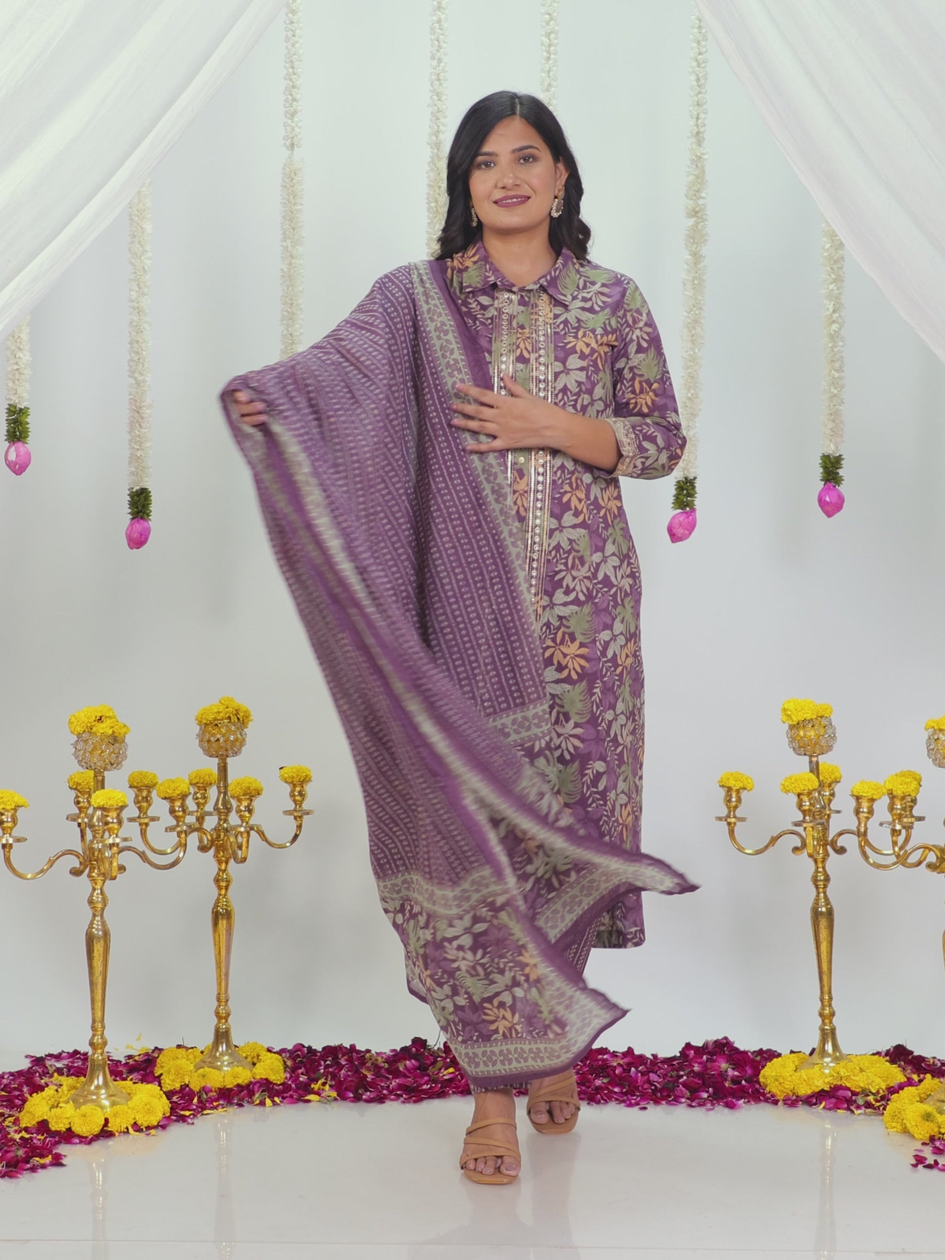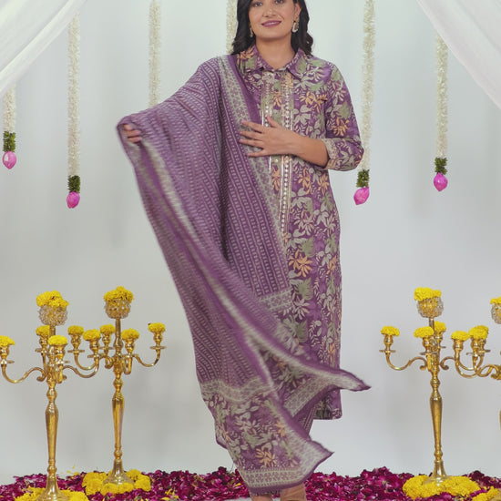 This Purple Soft Cotton kurta with a High Low flare is designed for comfort and style. Featuring a Collared neckline, 3/4 Sleeve sleeves, and a graceful Calf Length hemline, it’s perfect for festive wear or semi-formal gatherings. The Floral highlights add depth and texture, making it a standout piece. Accessorise with a contrasting dupatta and keep it pristine by following proper care instructions.