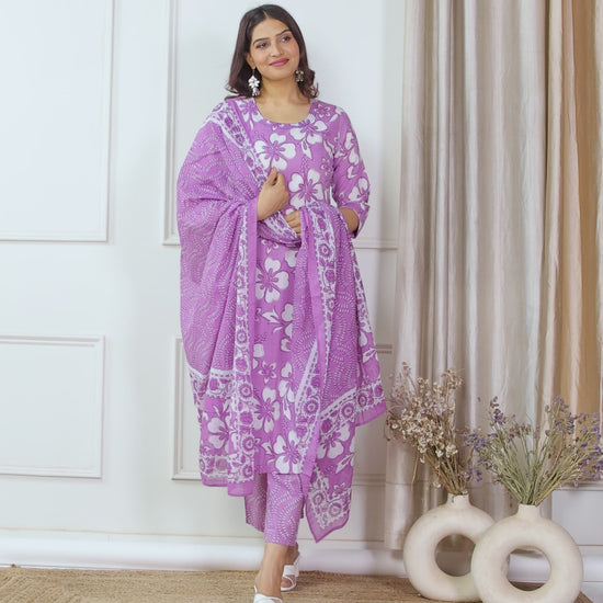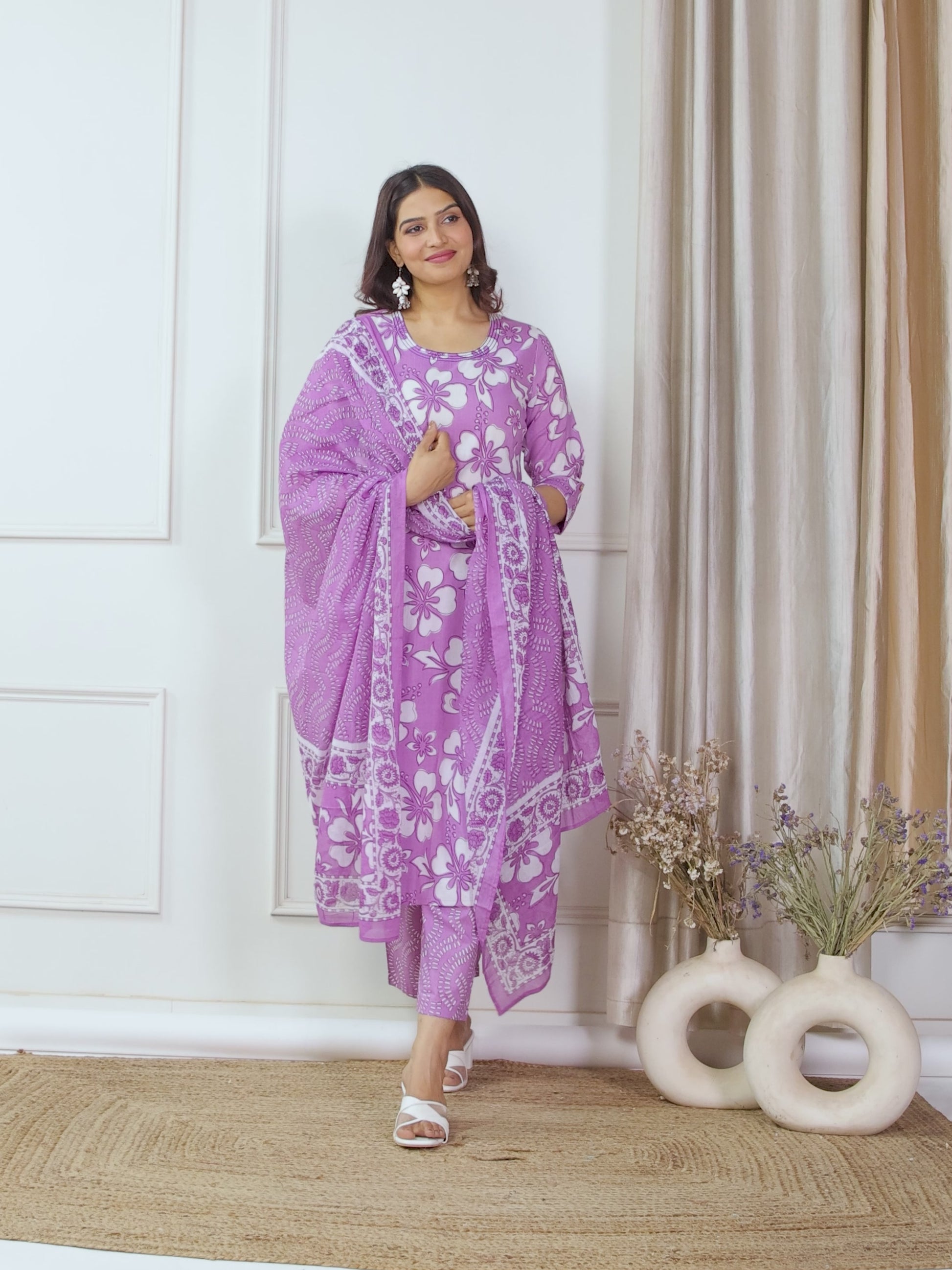 Embroidered Soft Cotton Floral Straight Purple Kurta