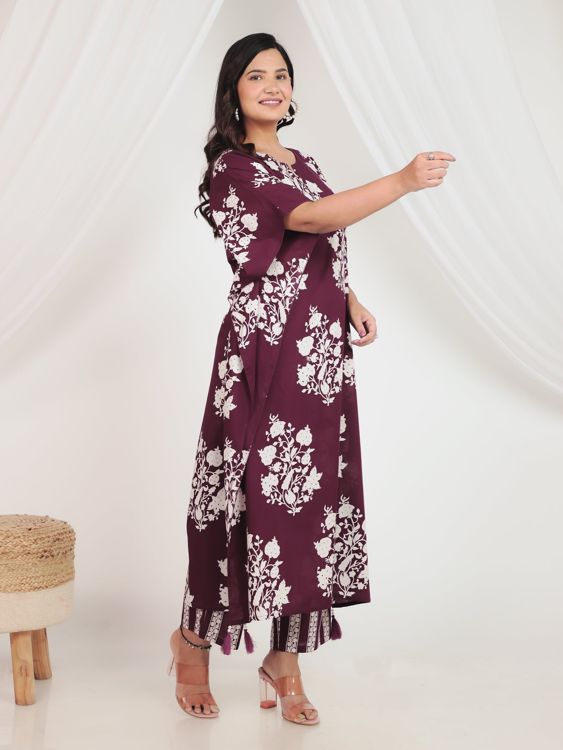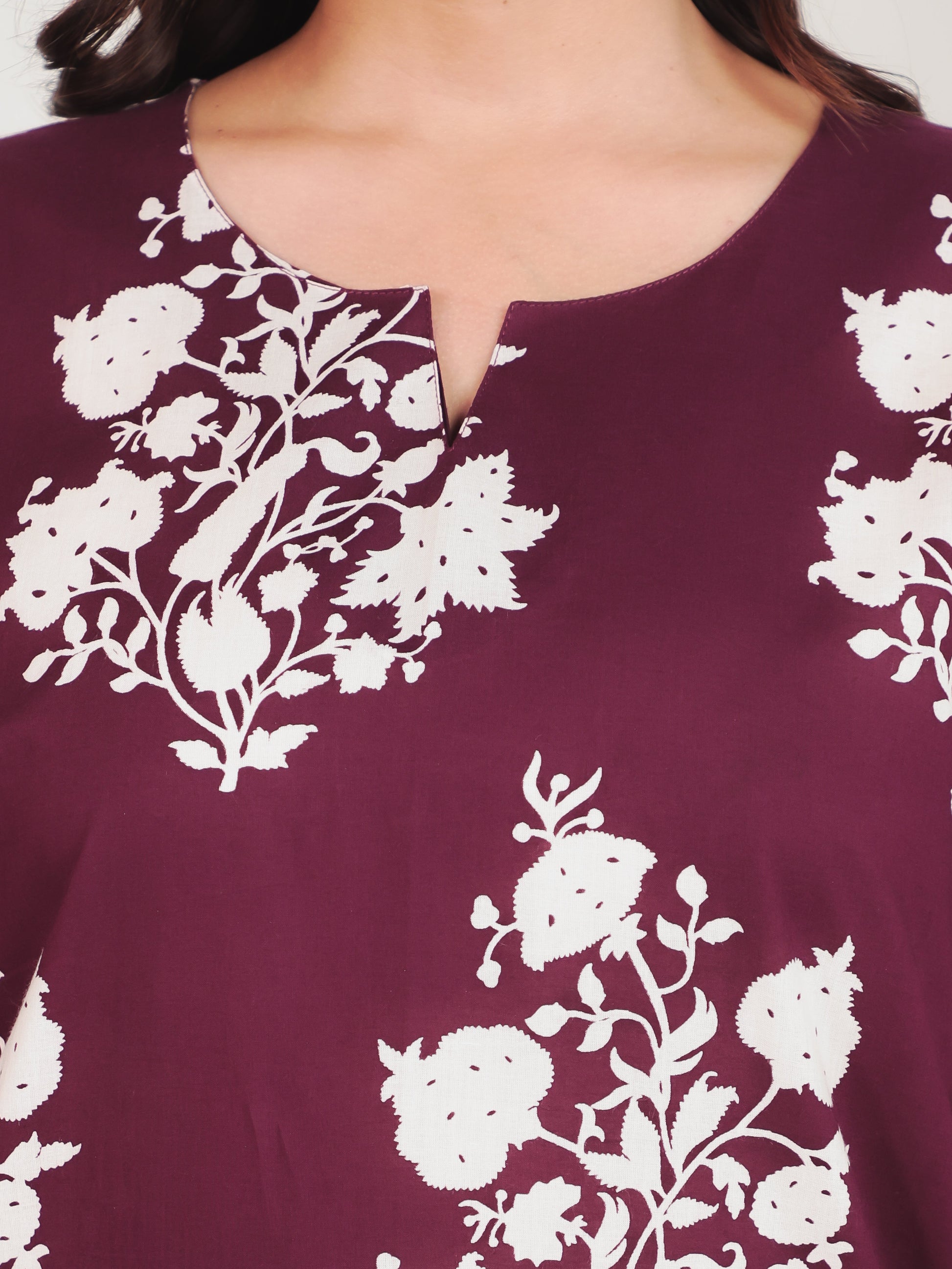 This Purple Kaftan kurta in soft Soft Cotton is a timeless pick for festive and casual wear. Designed with a Round neckline and Half Sleeves sleeves, its graceful Calf Length cut flatters all body types. The delicate Floral detailing adds a touch of sophistication. Pair it with statement earrings and juttis for a polished look. Maintain its pristine look by following proper care instructions.