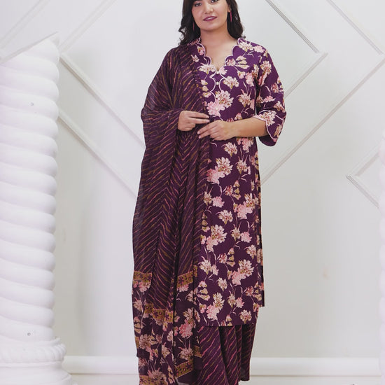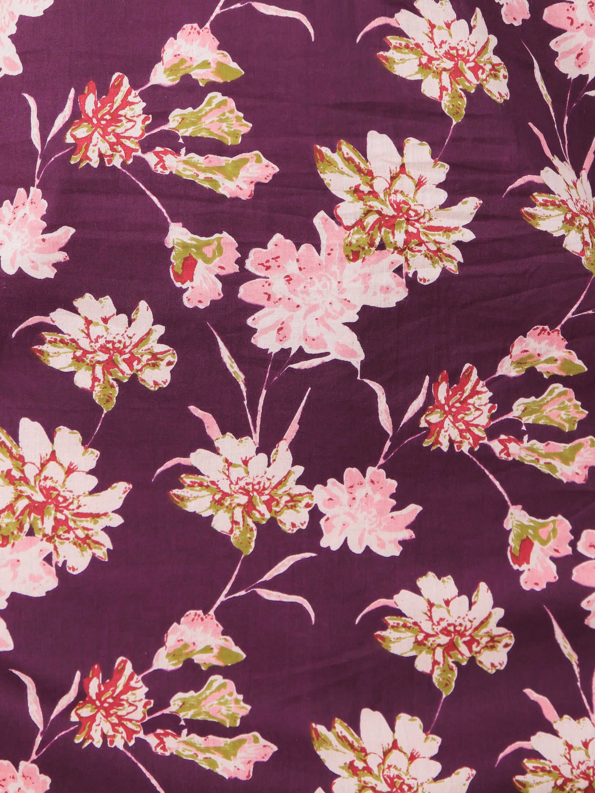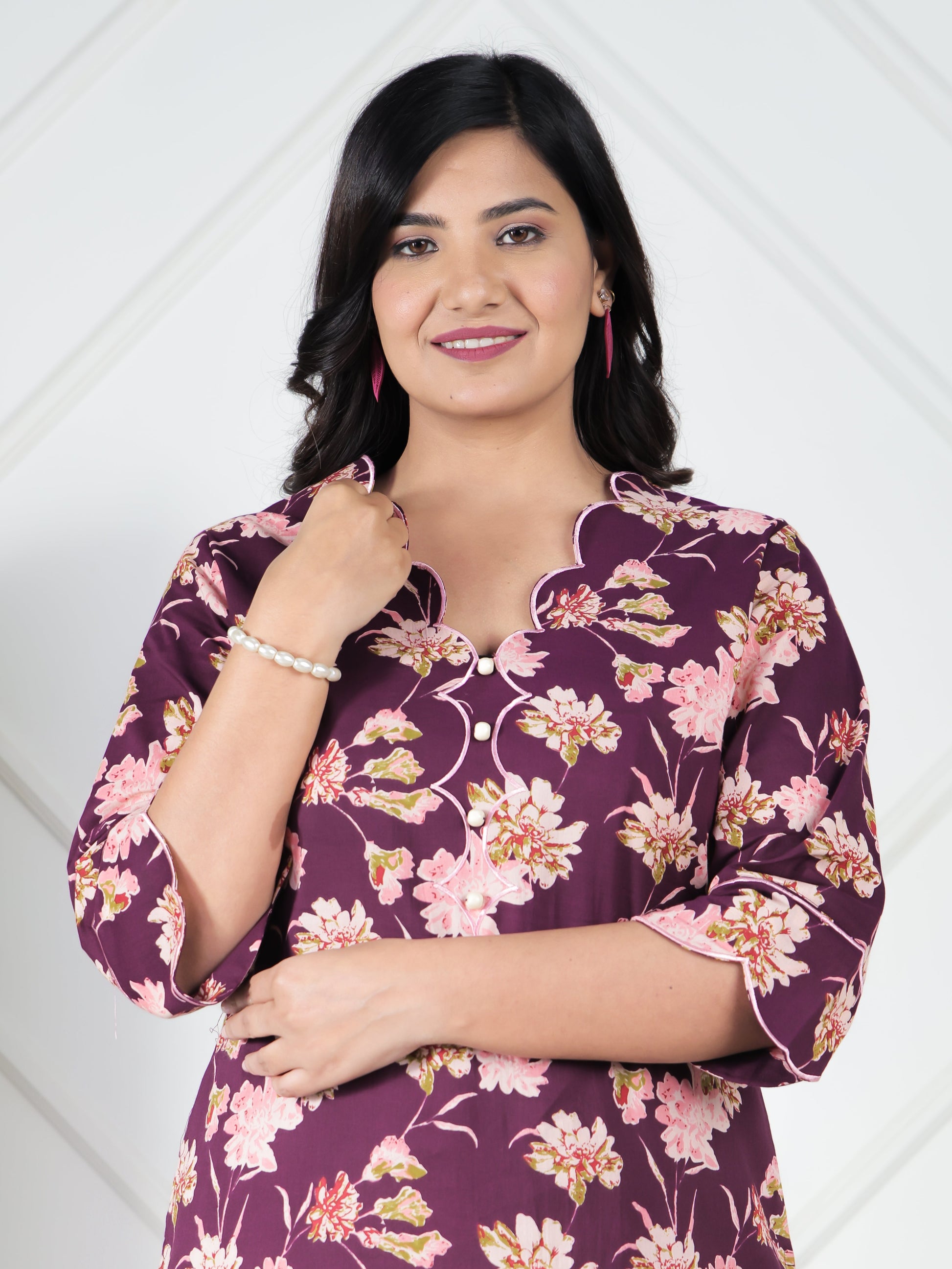 Embroidered Soft Cotton Floral Straight Purple Kurta