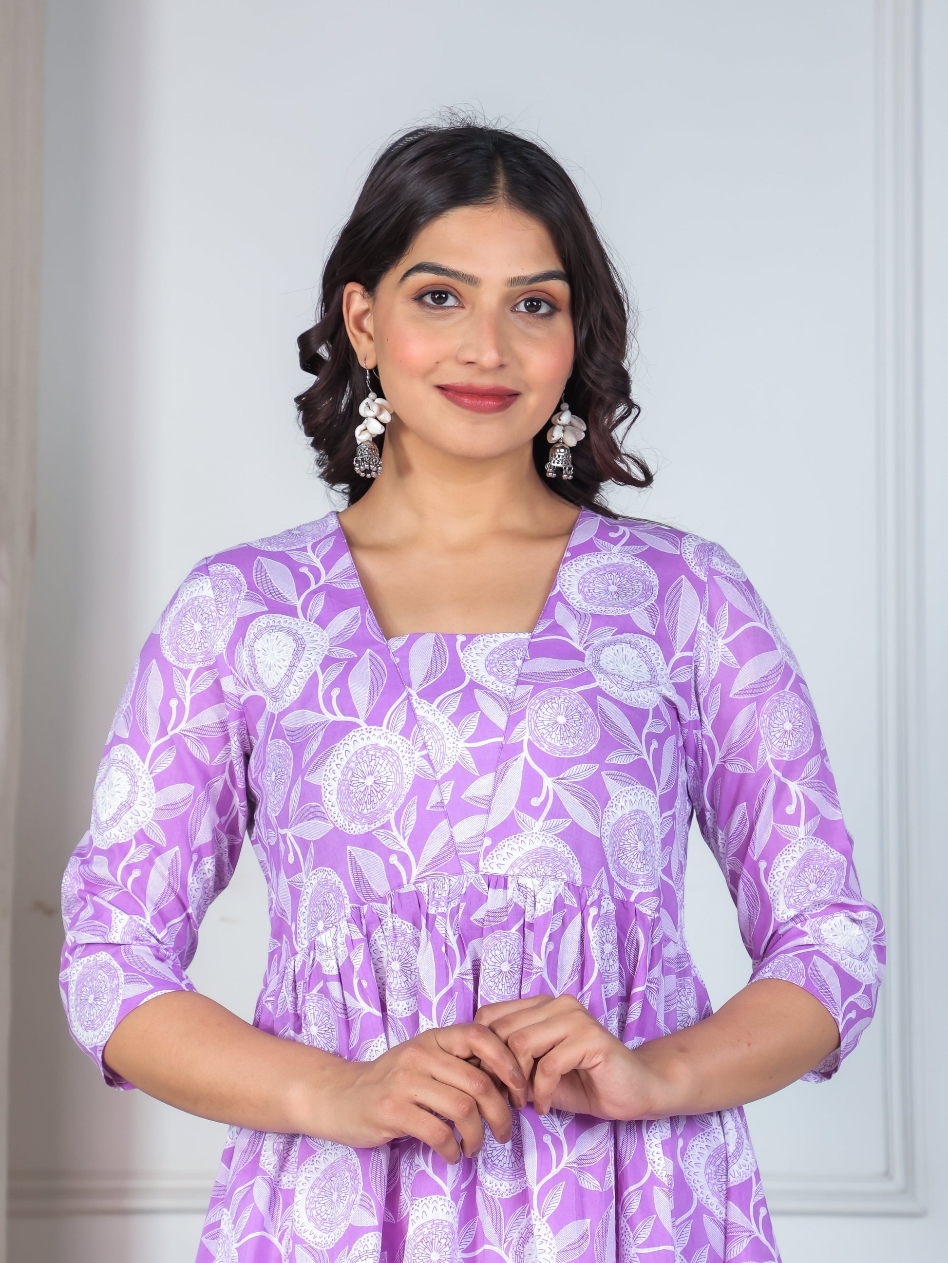 Elevate your ethnic wardrobe with this Soft Cotton kurta in a stunning Purple hue. Featuring an elegant Gathered fit and striking Geometric accents, it’s perfect for festive celebrations or family gatherings. The V neckline and 3/4 Sleeve provide all-day comfort. Team with gold-toned accessories for an effortlessly chic vibe. Maintain its charm by following proper care instructions.