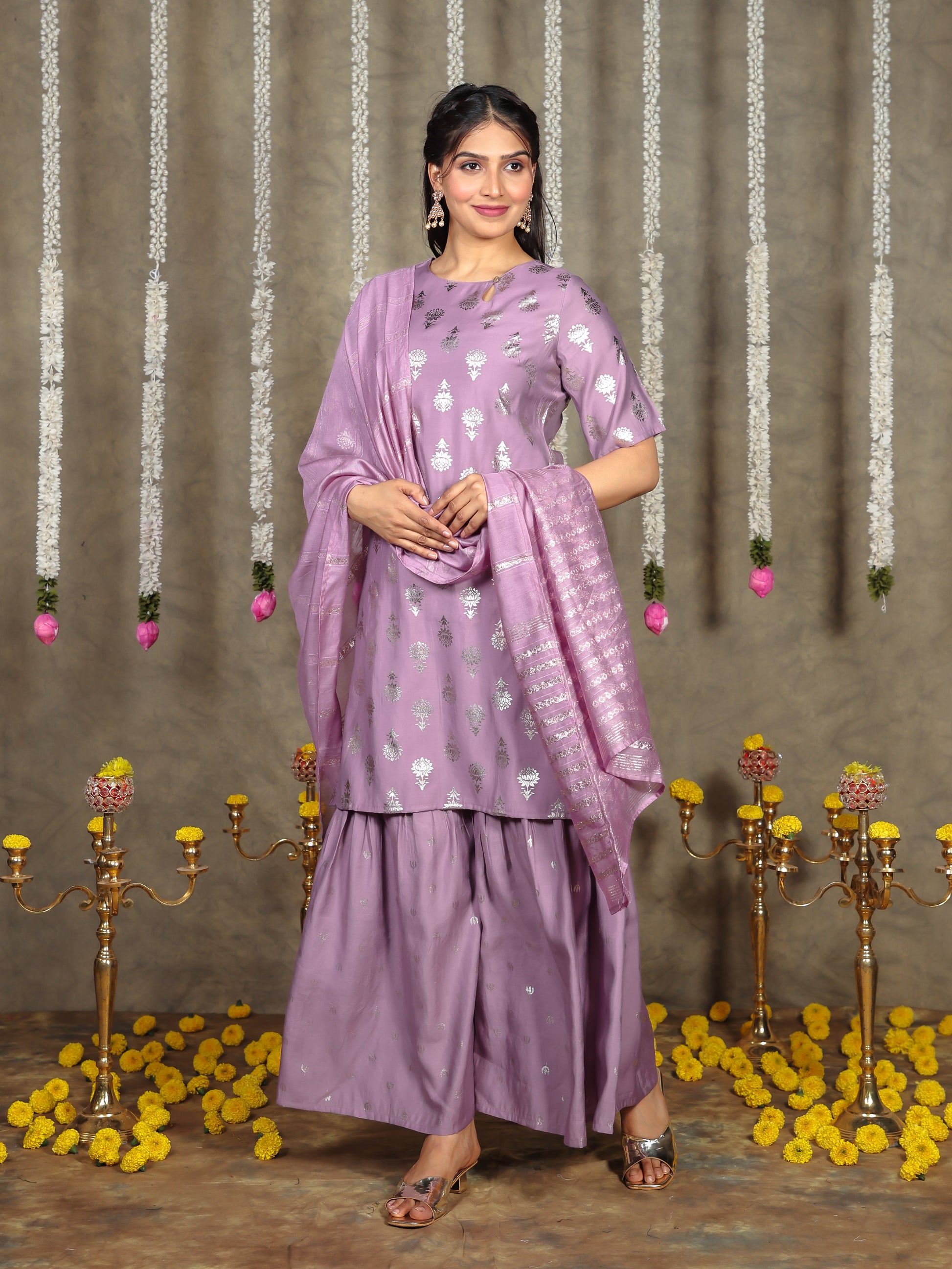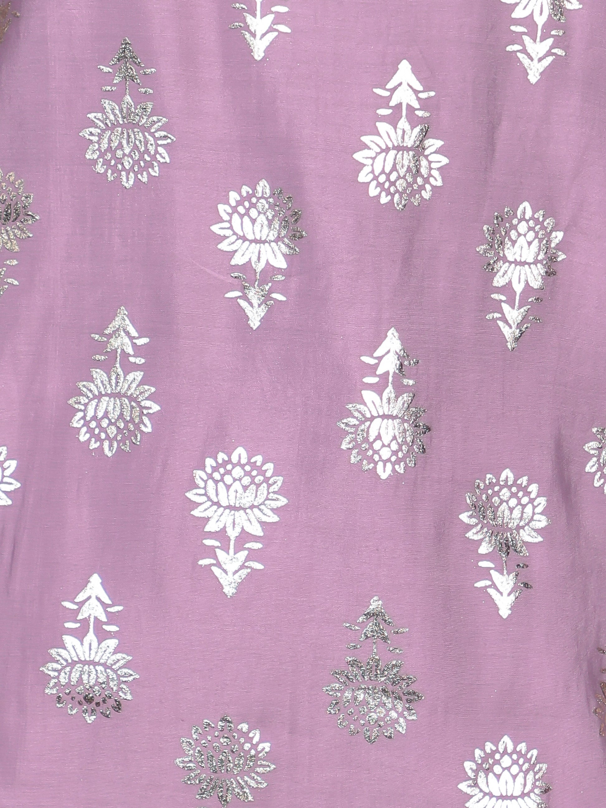 This Purple Straight kurta in soft Chanderi is a timeless pick for festive and casual wear. Designed with a Round with Keyhole neckline and Half Sleeves sleeves, its graceful Knee Length cut flatters all body types. The delicate Gold foil detailing adds a touch of sophistication. Pair it with statement earrings and juttis for a polished look. Maintain its pristine look by following proper care instructions.