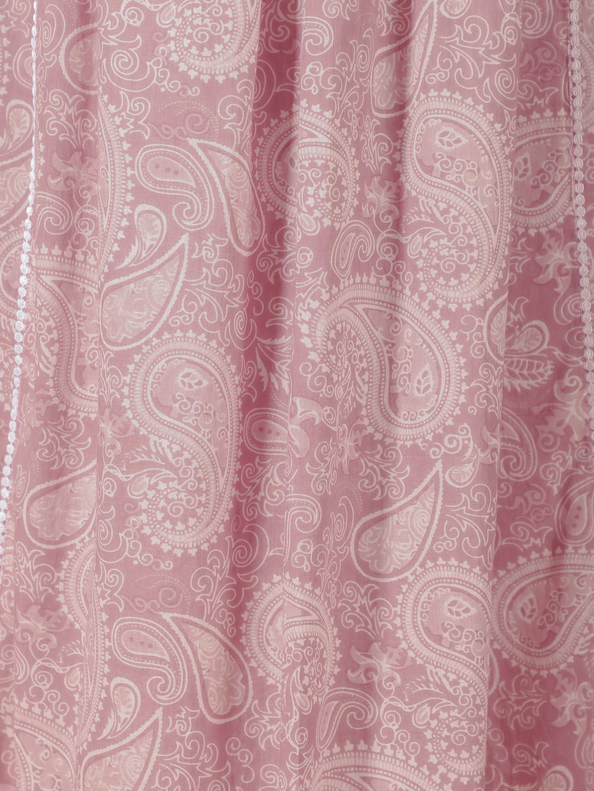This purple paisley kurta offers the perfect blend of comfort and style. The beautiful paisley pattern complements the elegant round neckline. This meticulous laces, embroidered work adds dimension and texture to the design. The subtle a-line flare adds feminine grace while ensuring easy movement. The calf length paired with 3/4 sleeve creates a proportioned silhouette. Suitable for daily wear or casual outings, and easily maintained with machine wash.