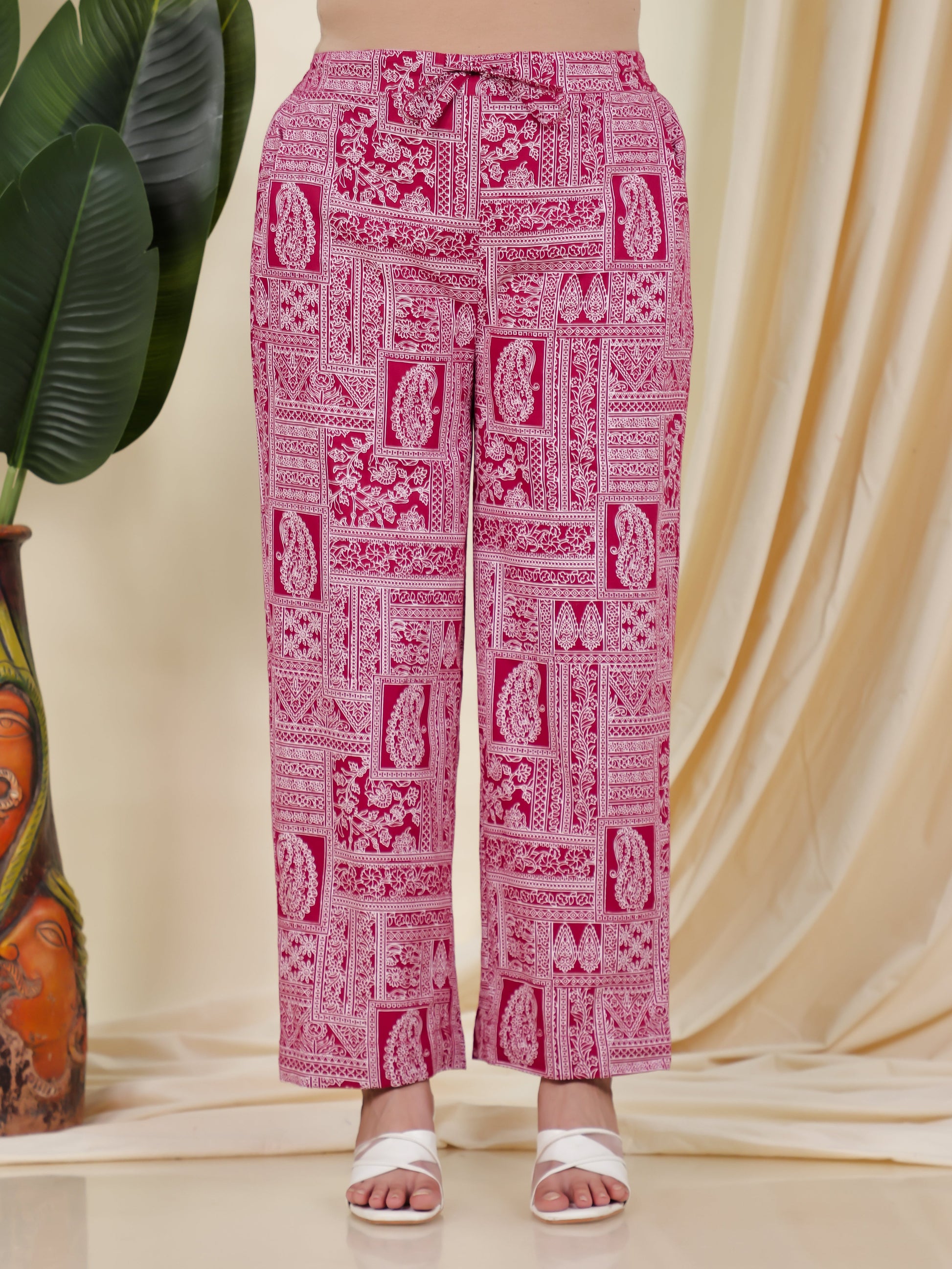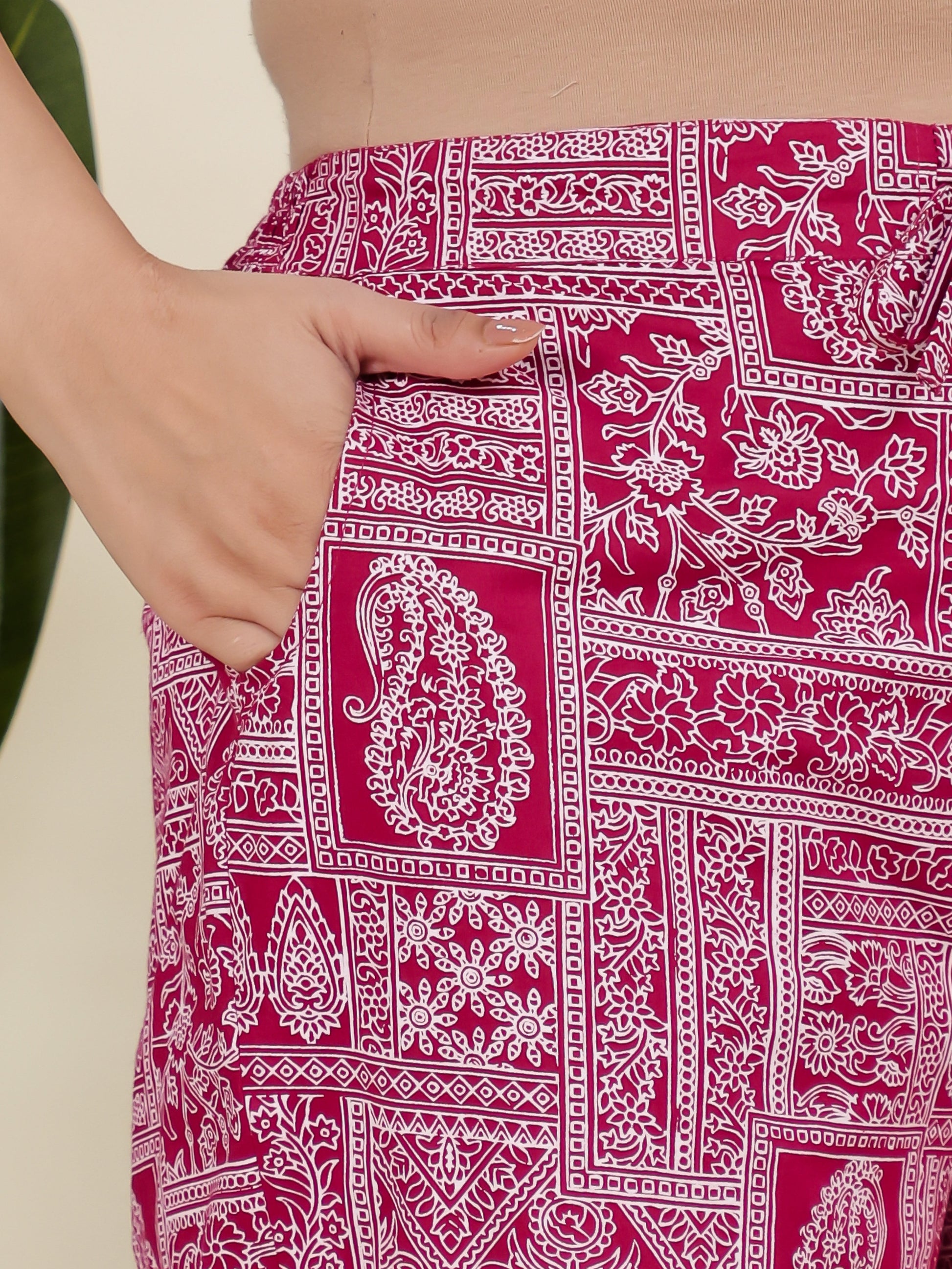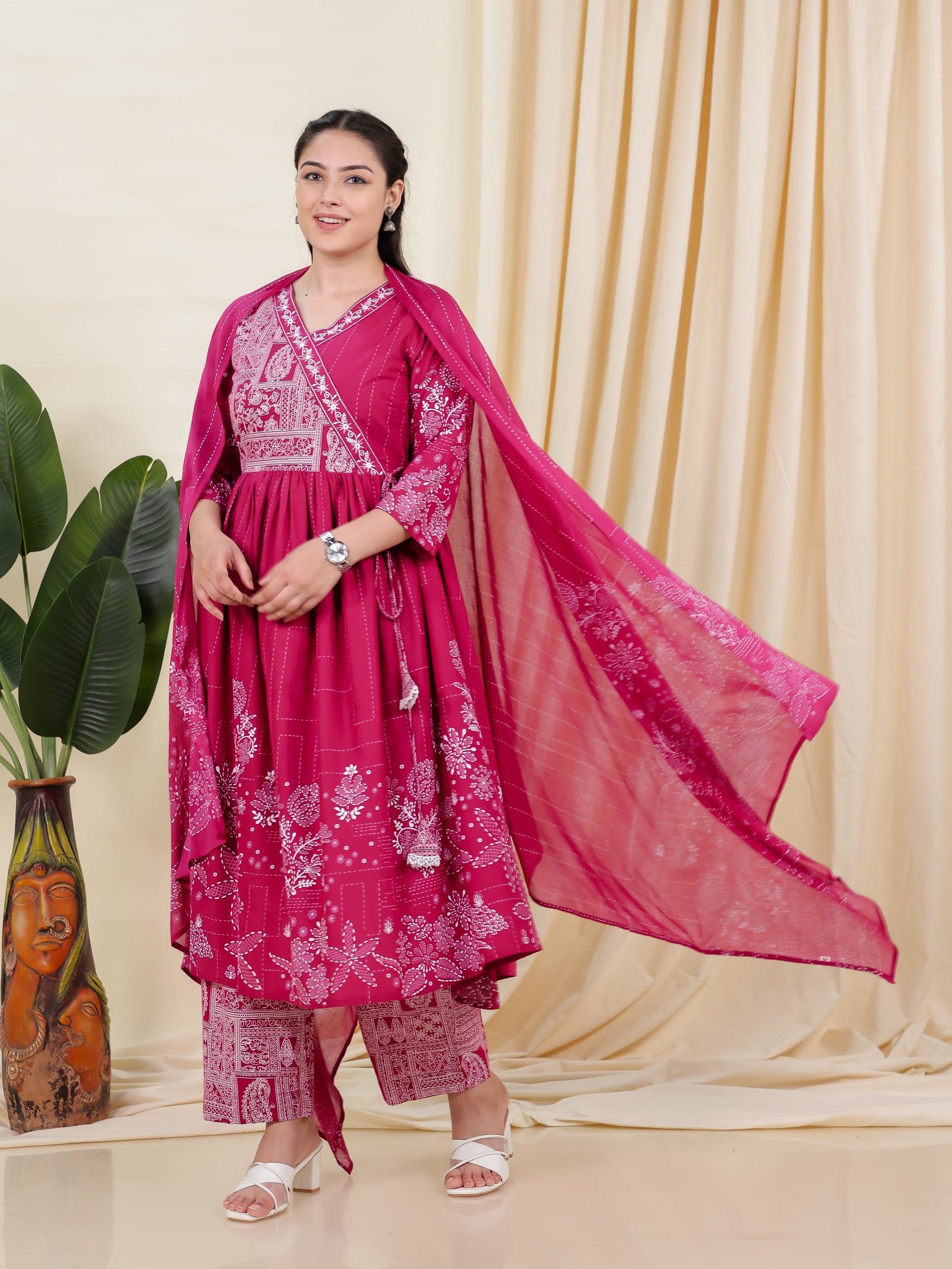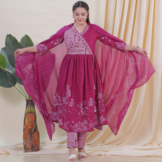 Embroidered Soft Cotton Placement Print Angrakha Purple Kurta