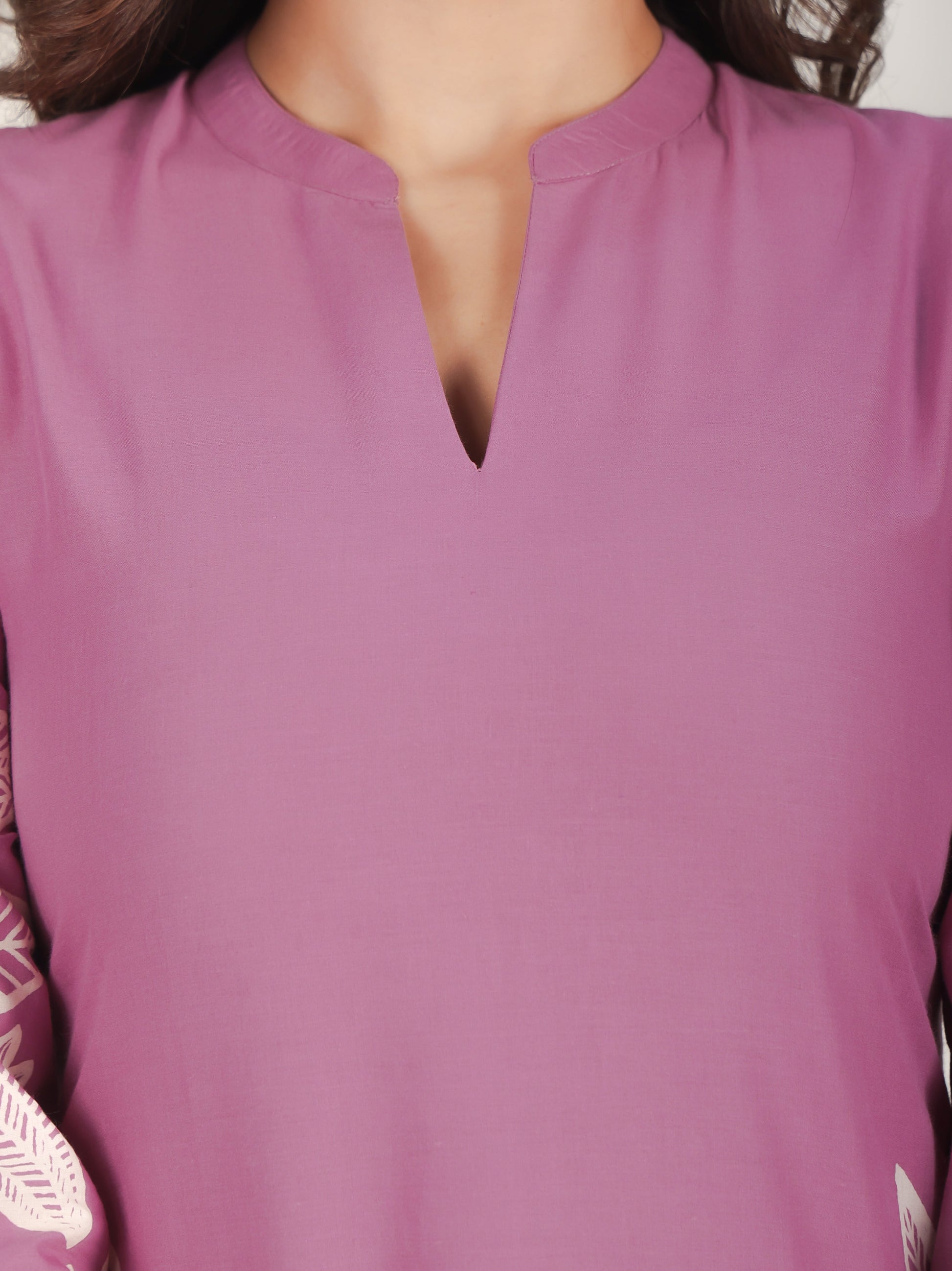 This Purple Straight kurta in soft Soft Cotton is a timeless pick for festive and casual wear. Designed with a Mandarin Collar neckline and 3/4 Sleeve sleeves, its graceful cut flatters all body types. The delicate Placement Print detailing adds a touch of sophistication. Pair it with statement earrings and juttis for a polished look. Maintain its pristine look by following proper care instructions.