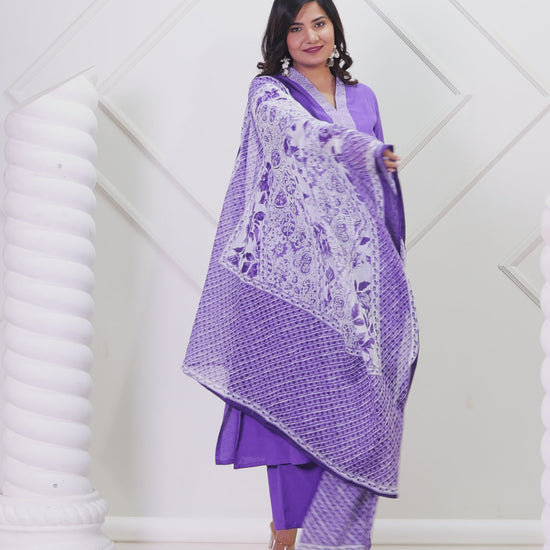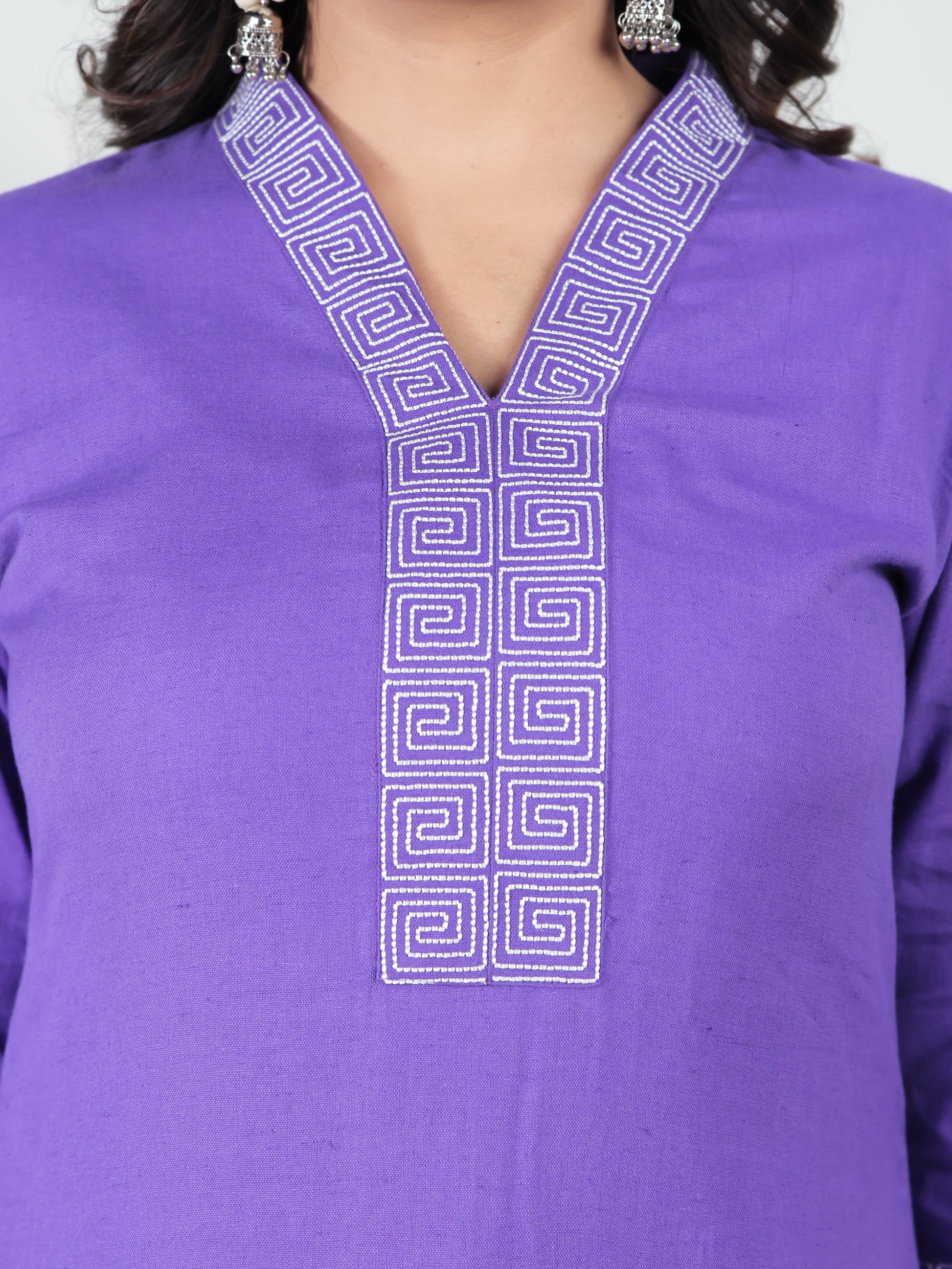 Embroidered Linen Cotton Solid A-line Purple Kurta