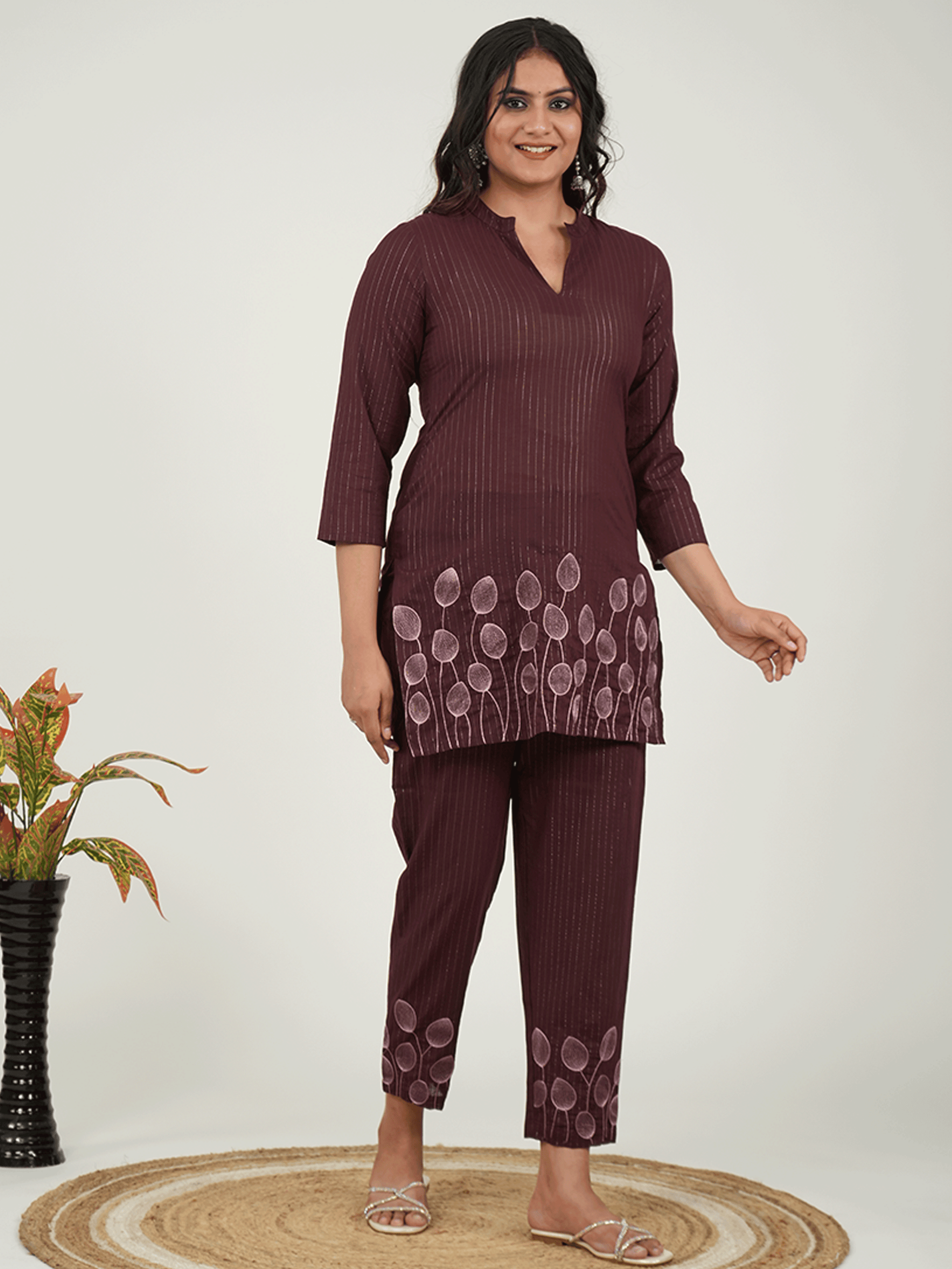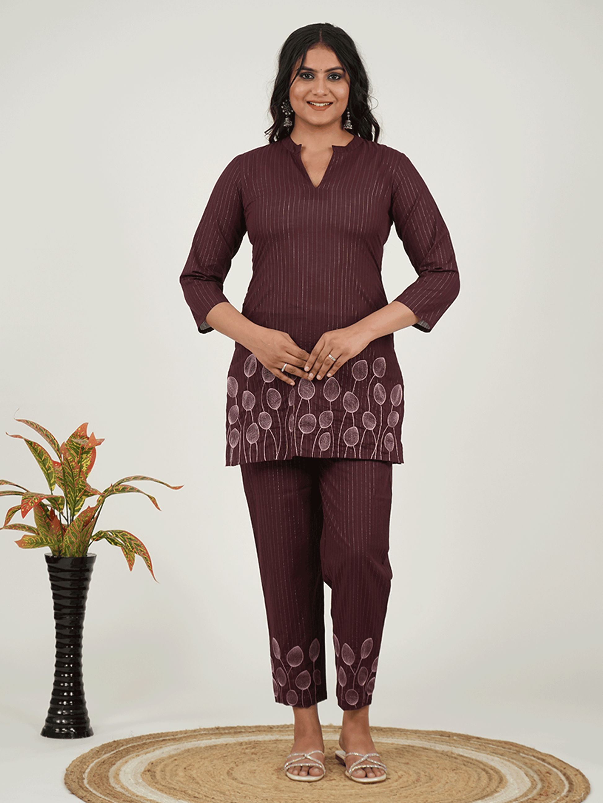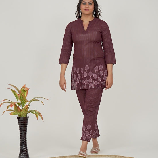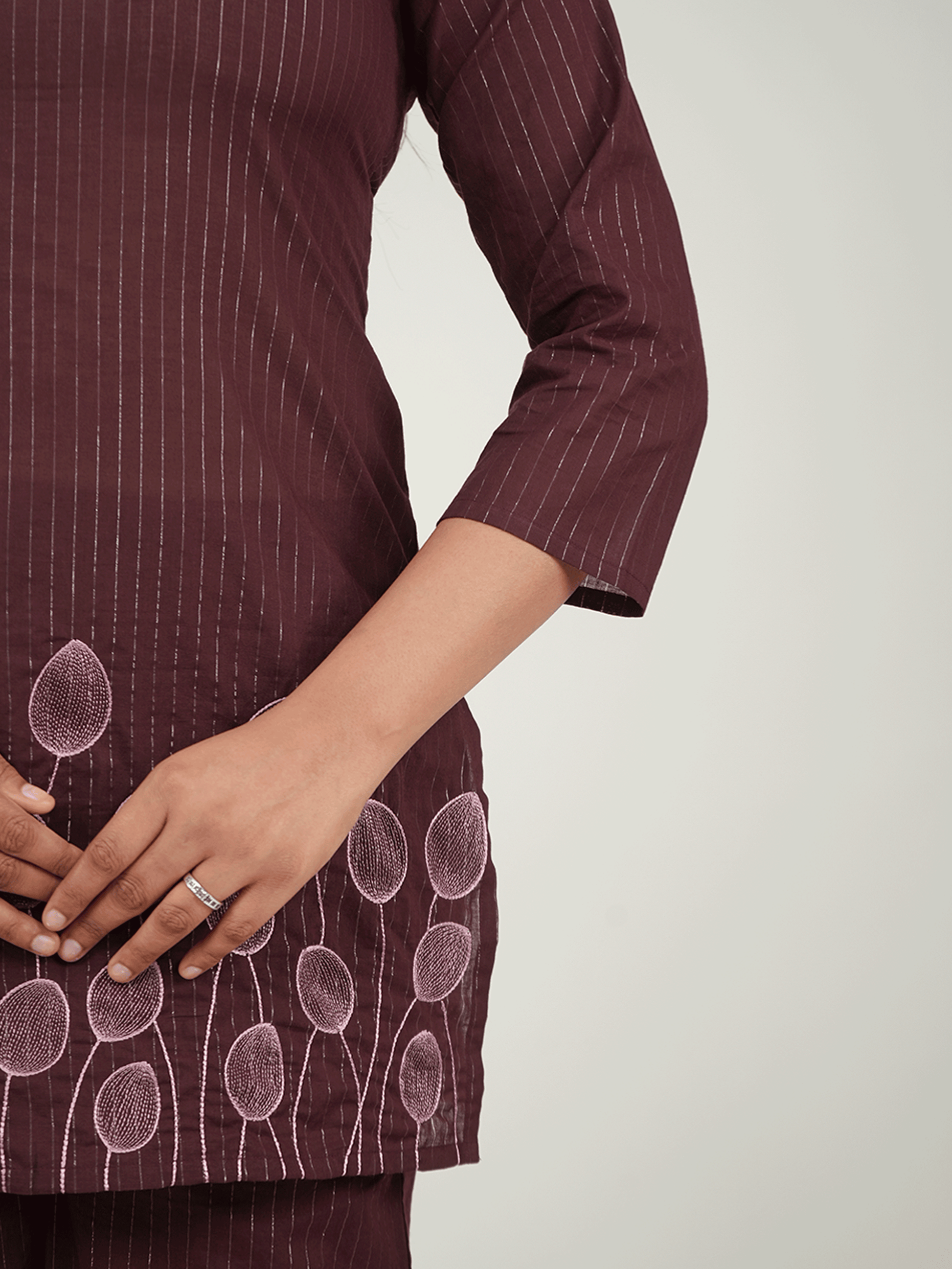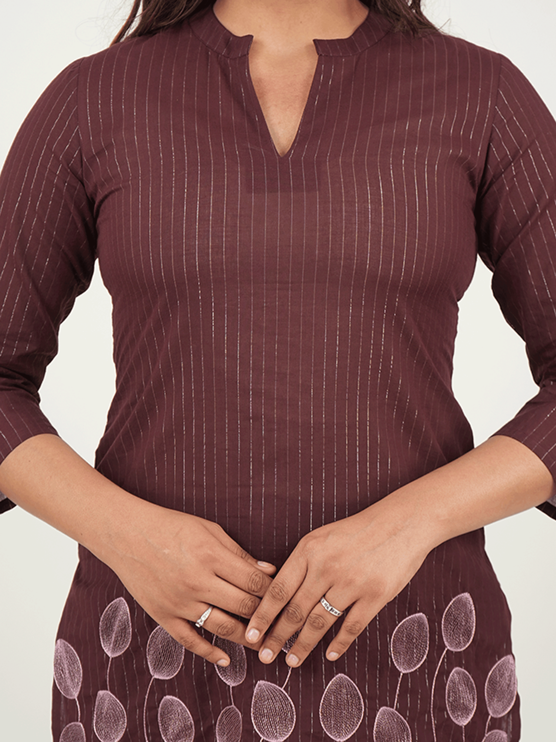 Crafted from breathable Lurex Cotton, this Straight kurta in Purple blends traditional design with everyday comfort. The Solid finish adds artisanal charm, while the Short silhouette ensures effortless elegance. Style with palazzos or leggings for versatile looks, from workdays to weekend outings. Designed for easy care, this kurta stays beautiful with simple care instructions.