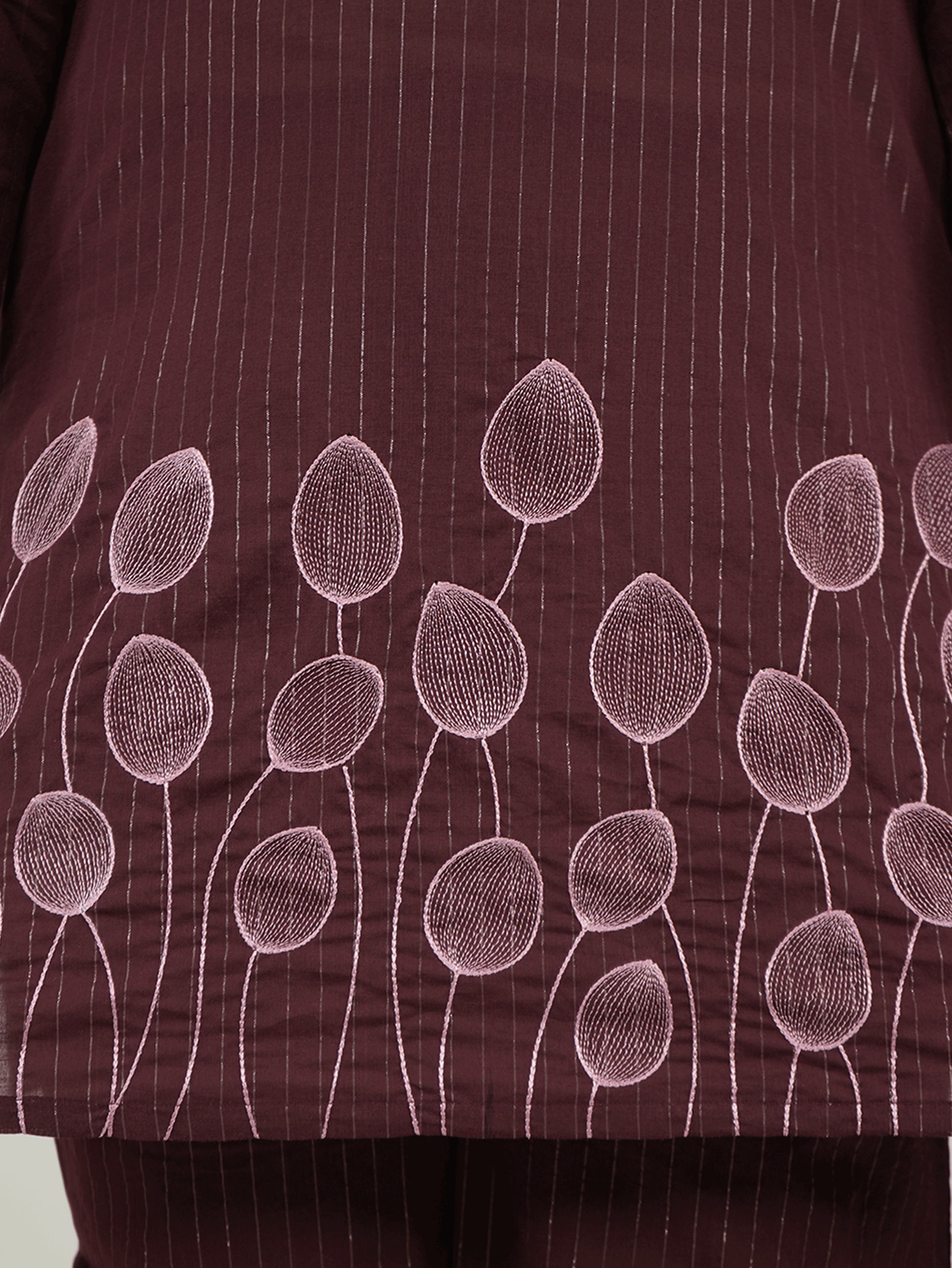 Embroidered Lurex Cotton Solid Straight Purple Kurta