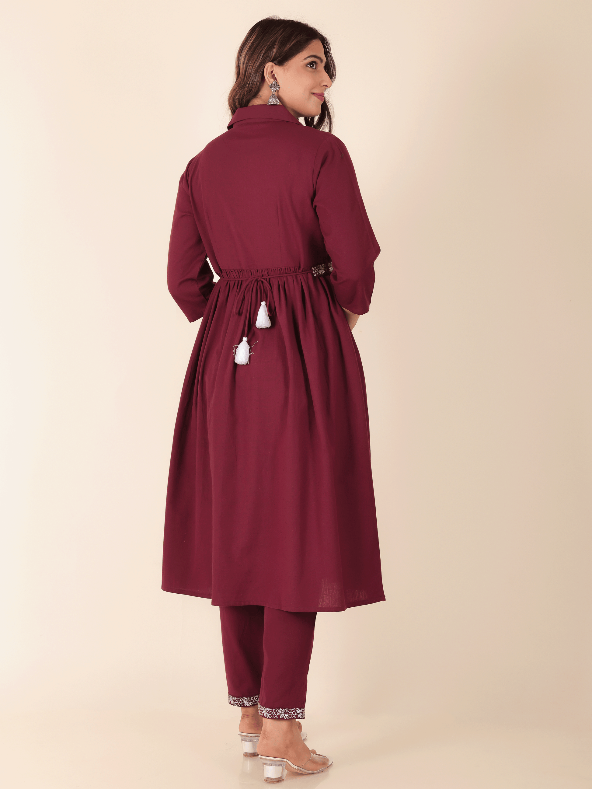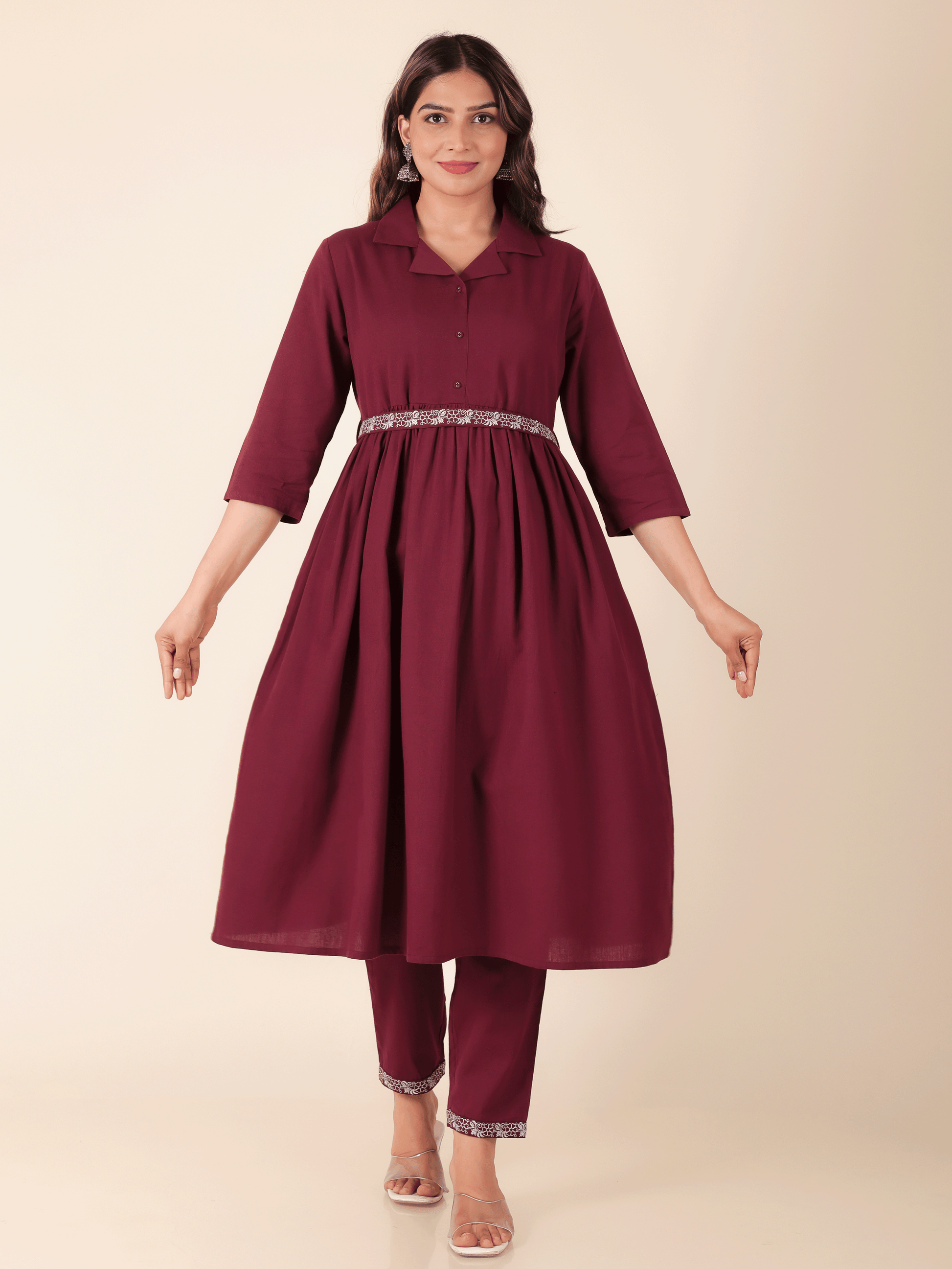 Crafted from breathable Linen Cotton, this A-line kurta in Maroon blends traditional design with everyday comfort. The Solid finish adds artisanal charm, while the Calf Length silhouette ensures effortless elegance. Style with palazzos or leggings for versatile looks, from workdays to weekend outings. Designed for easy care, this kurta stays beautiful with simple care instructions.