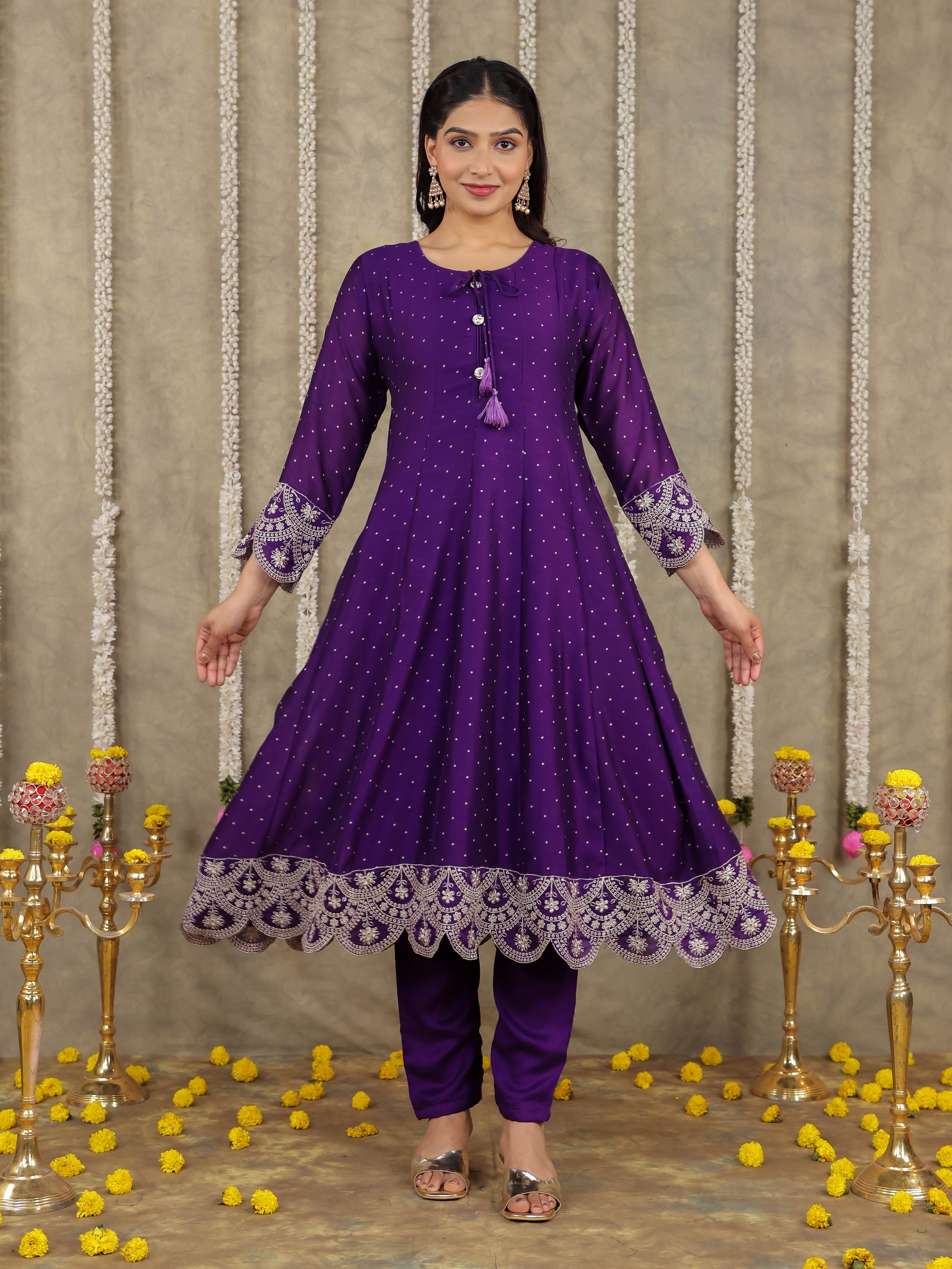 Elevate your ethnic wardrobe with this Self Design Georgette kurta in a stunning Purple hue. Featuring an elegant fit and striking Solid accents, it’s perfect for festive celebrations or family gatherings. The neckline and provide all-day comfort. Team with gold-toned accessories for an effortlessly chic vibe. Maintain its charm by following proper care instructions.