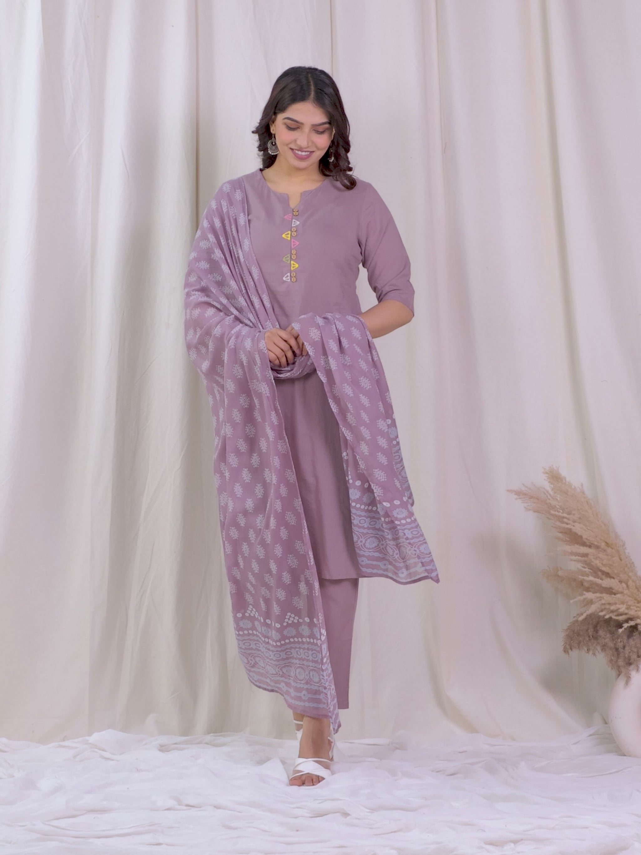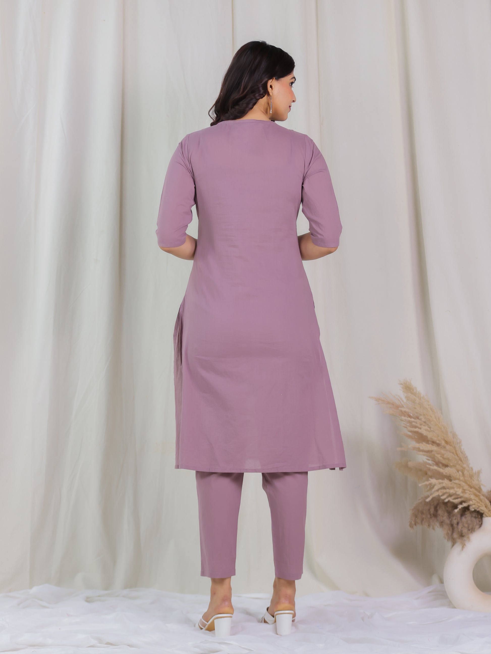 Elevate your ethnic wardrobe with this Soft Cotton kurta in a stunning Purple hue. Featuring an elegant A-line fit and striking Solid accents, it’s perfect for festive celebrations or family gatherings. The Round neckline and 3/4 Sleeve provide all-day comfort. Team with gold-toned accessories for an effortlessly chic vibe. Maintain its charm by following proper care instructions.