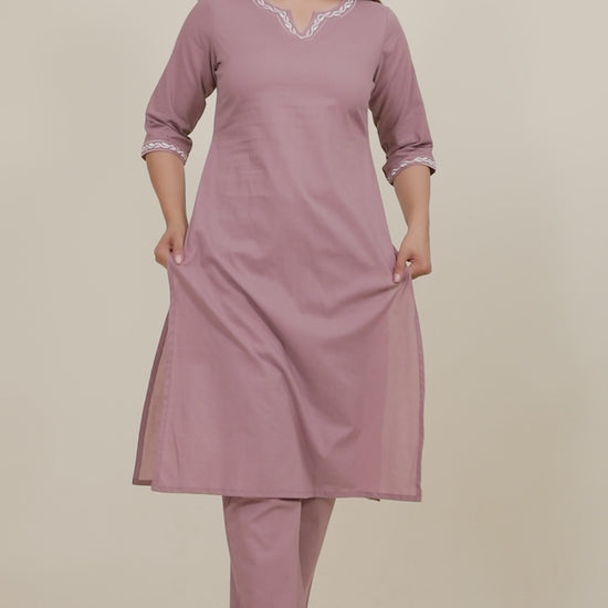 Embroidered Soft Cotton Solid Straight Purple Kurta