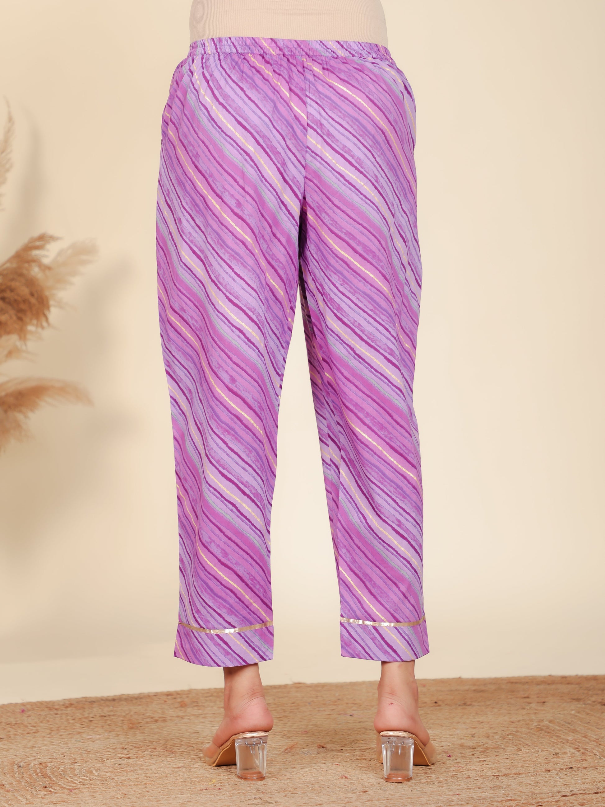 This Purple Kaftan kurta in soft Soft Cotton is a timeless pick for festive and casual wear. Designed with a Round neckline and Short Sleeve sleeves, its graceful Calf Length cut flatters all body types. The delicate Striped detailing adds a touch of sophistication. Pair it with statement earrings and juttis for a polished look. Maintain its pristine look by following proper care instructions.