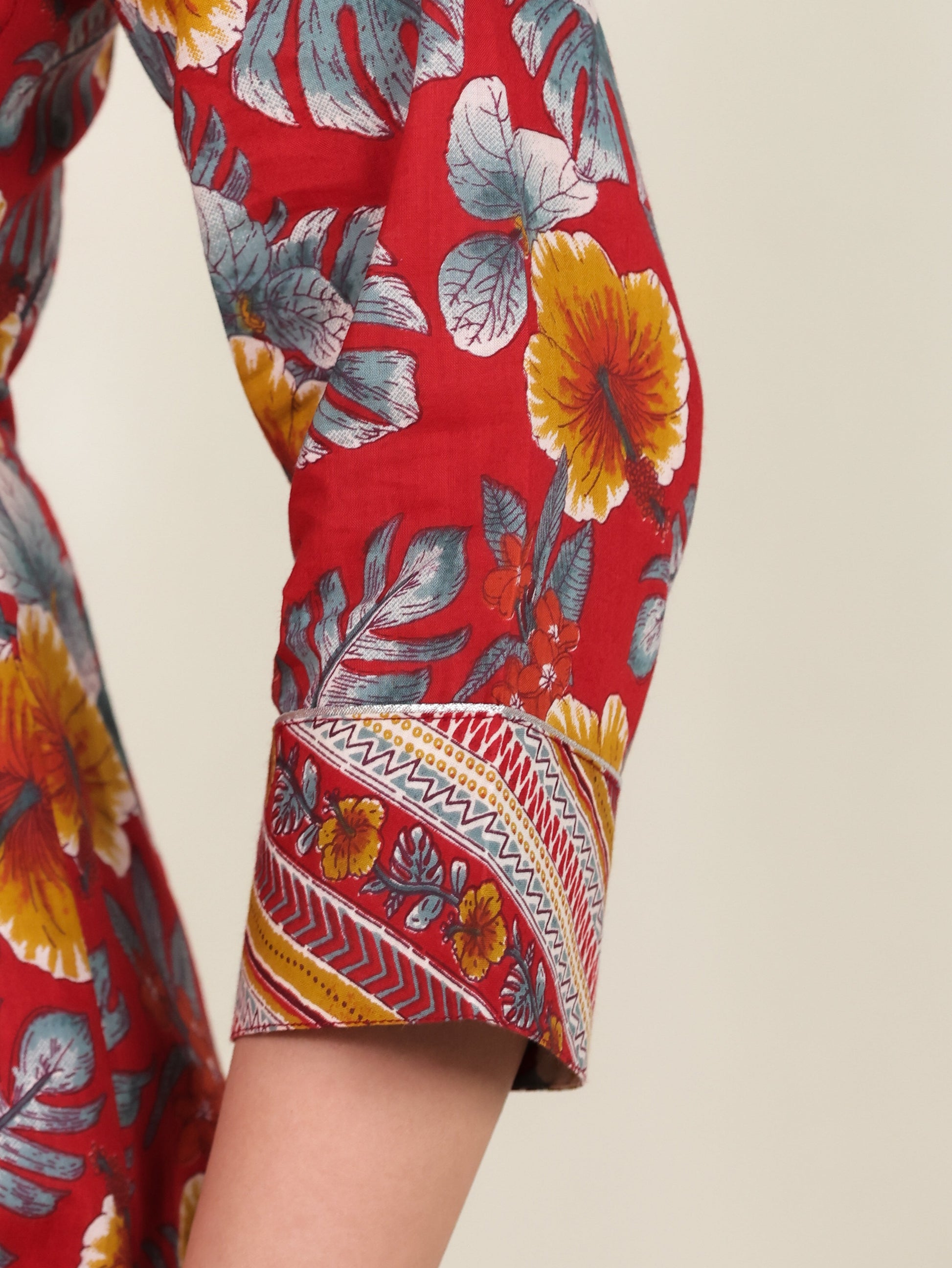 Embroidered Soft Cotton Floral Anarkali Red Kurta