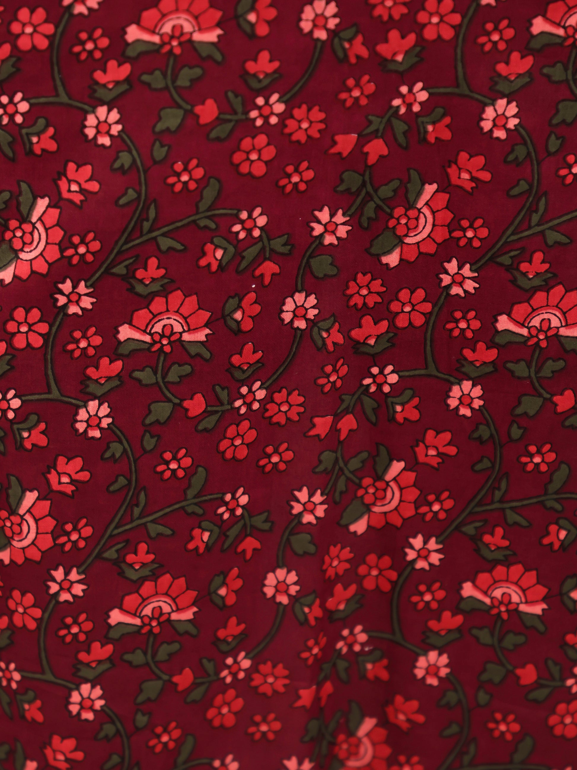 Embroidered Soft Cotton Floral A-line Red Kurta