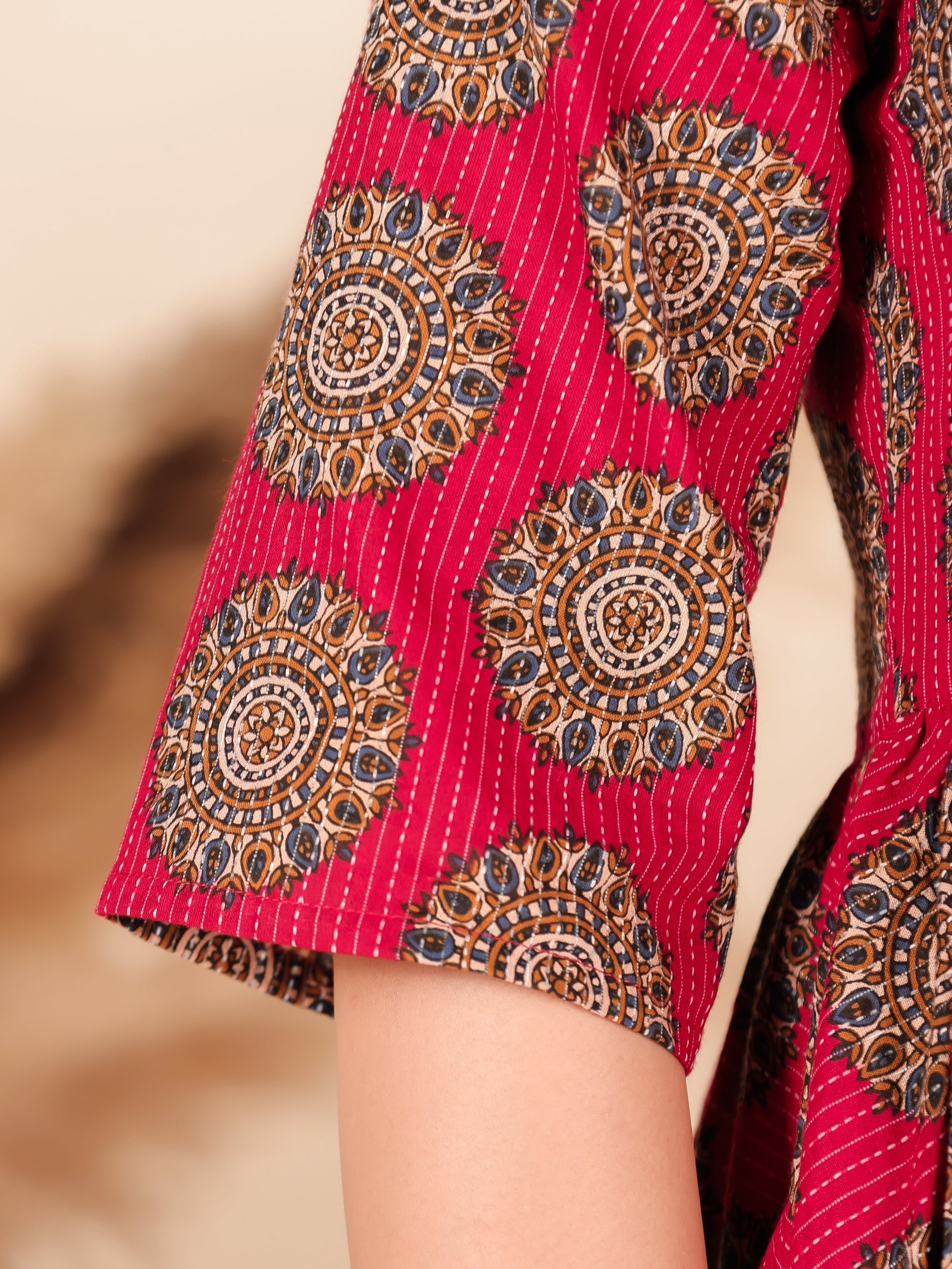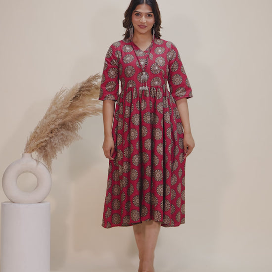 Kantha Cotton Geometric Angrakha Red Dress