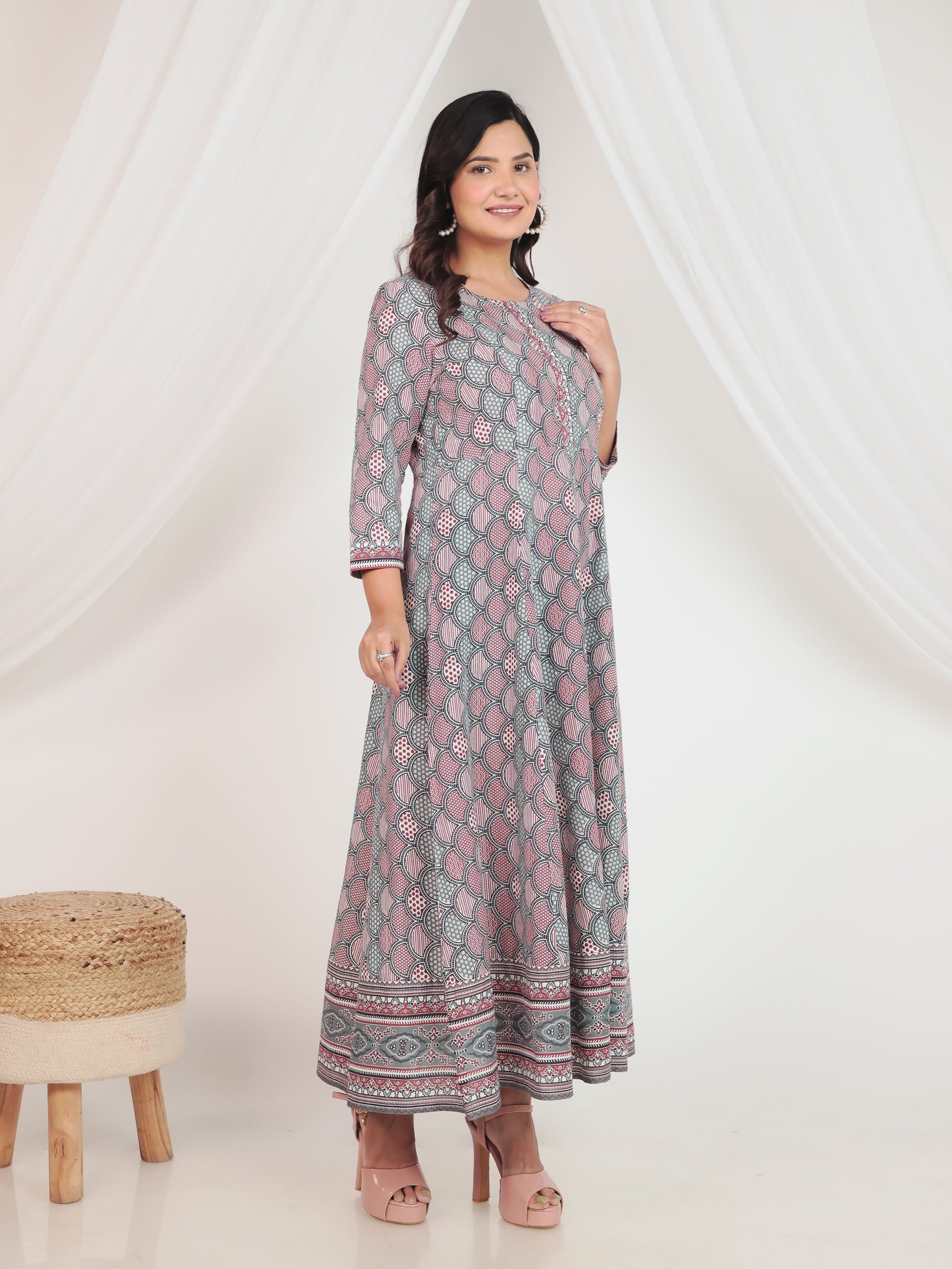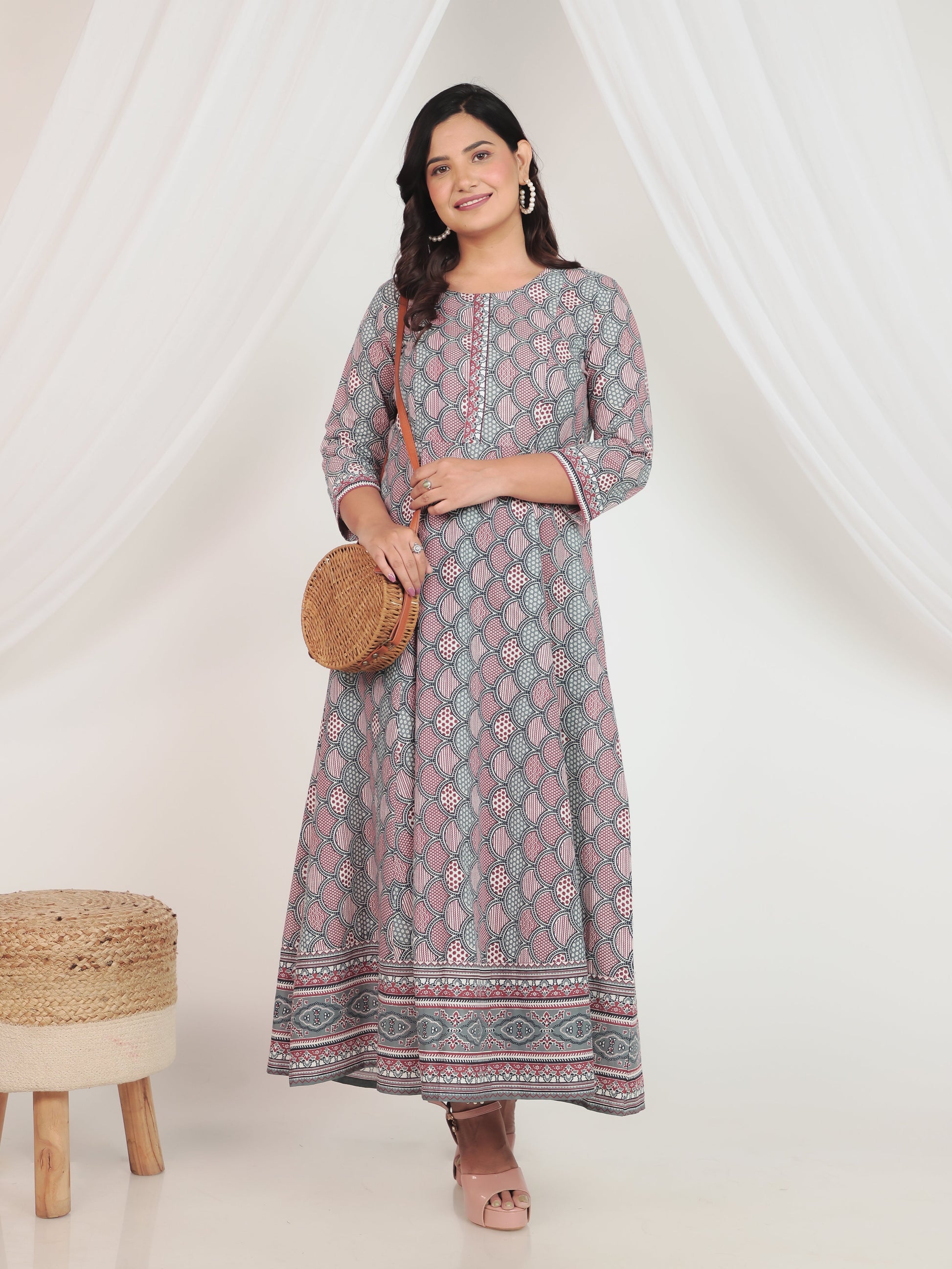Embroidered Soft Cotton Geometric Anarkali Red Dress